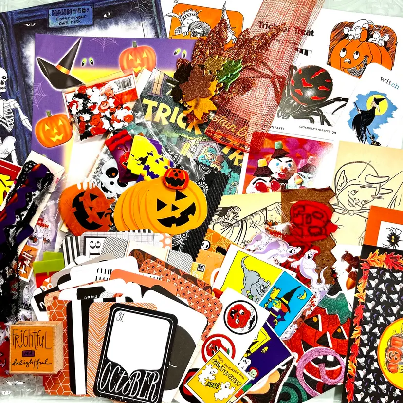 Well over 100 pieces to spice up your fun or spooky Halloween project.