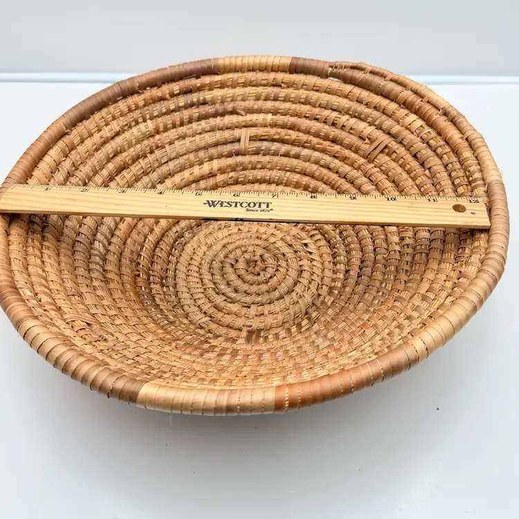 As shown 4.25 inches tall by 13 inches wide at the opening Condition is good
