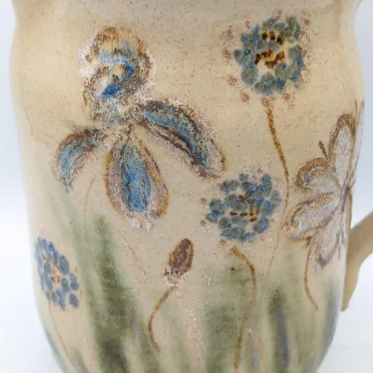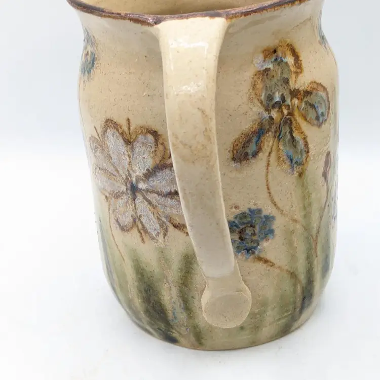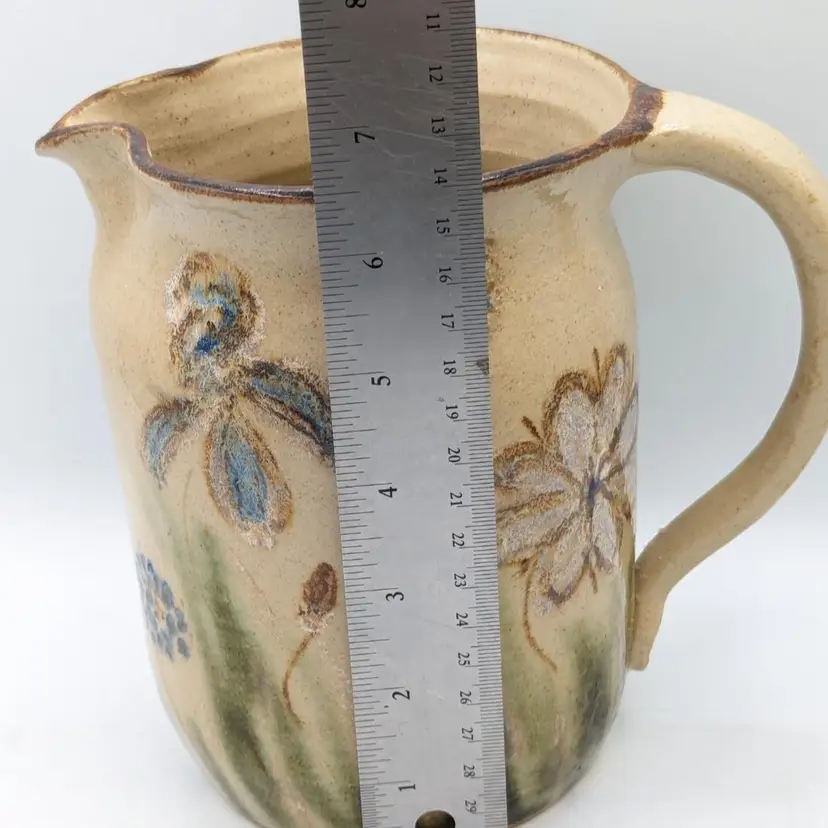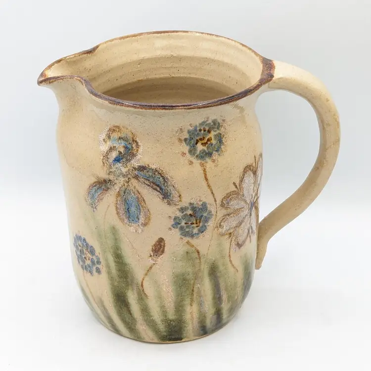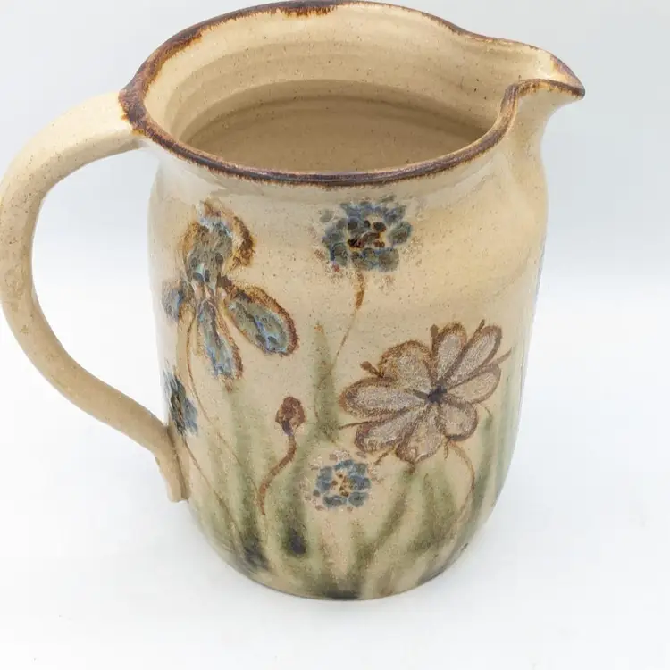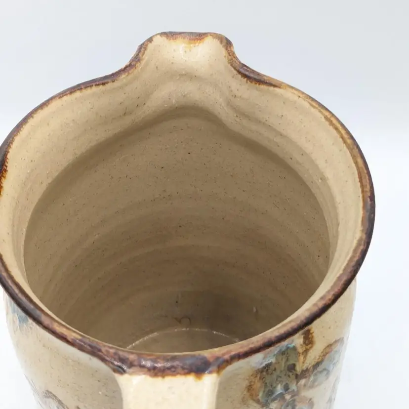 Janet Resnick pottery pitcher. Pitcher shows a little age ware and crazying towards the top . Measures 6 1/2” high and top is 4.5” wide. Signed on the bottom Janet Resnick.