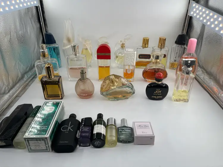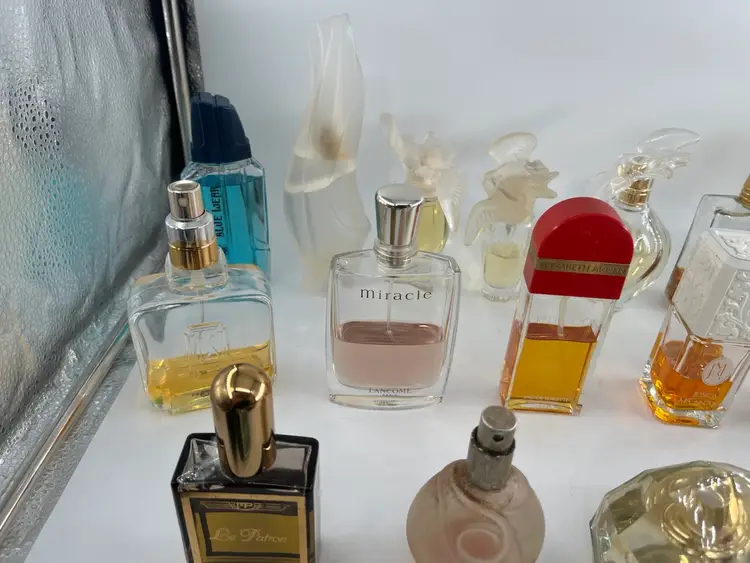 Please see all photos. More can be provided. Large mixed lot of beauty products including perfumes, colognes, toilet sprays, lotions and more. Consider all items used. Some are new and sealed, but all should be considered in use condition. Selling all as is. Some colognes and perfumes are missing tops/caps. Selling large death pile lot of mixed beauty supplies as is condition.