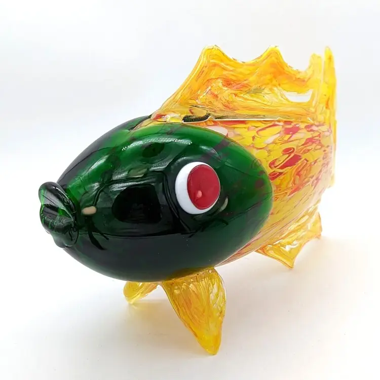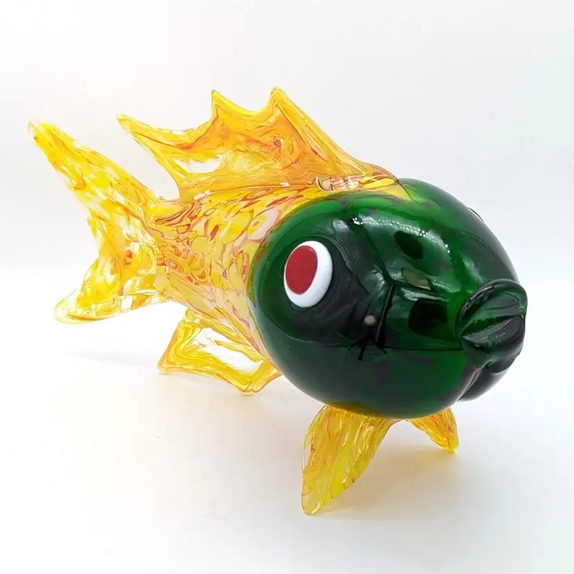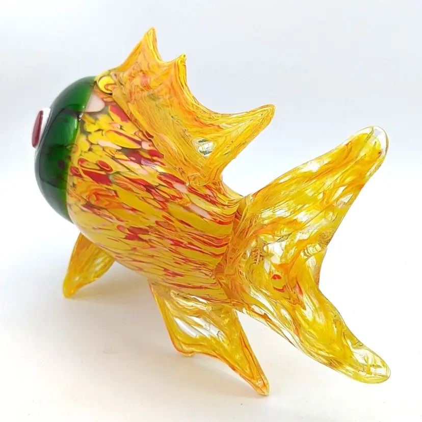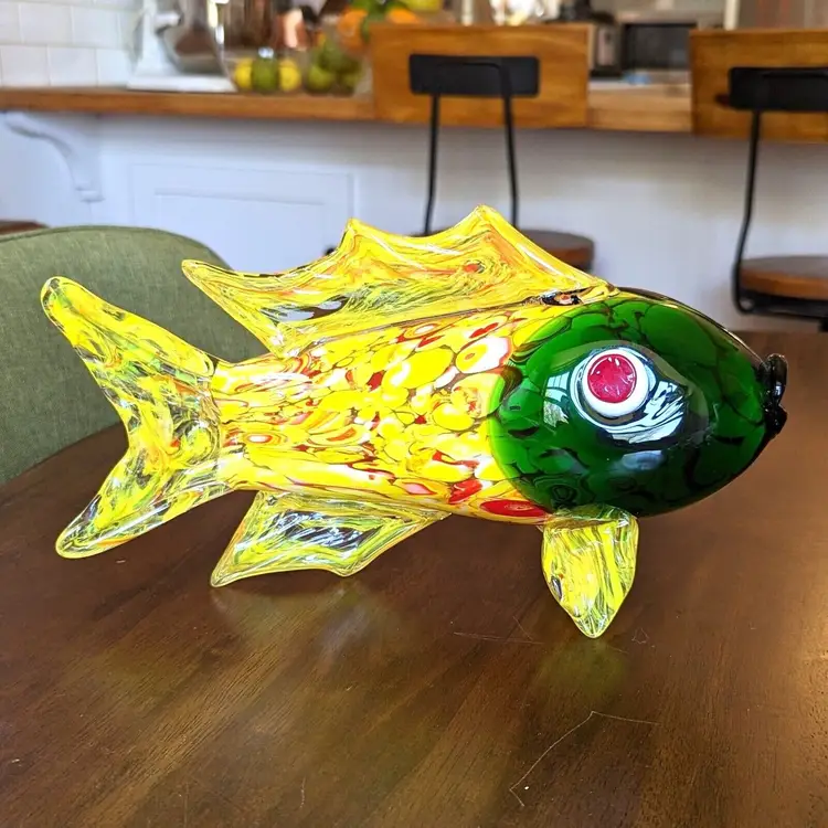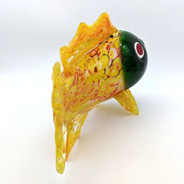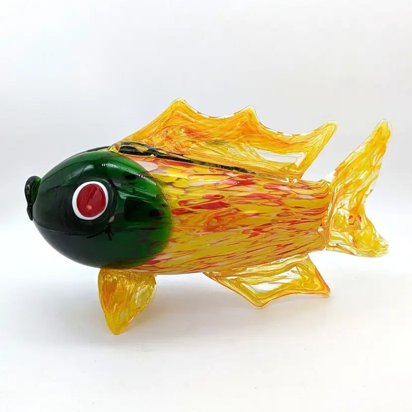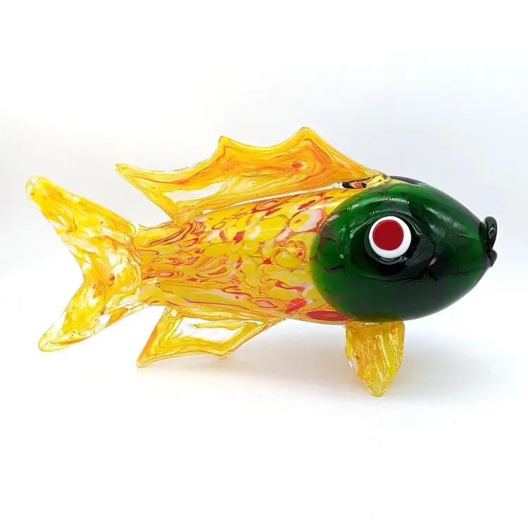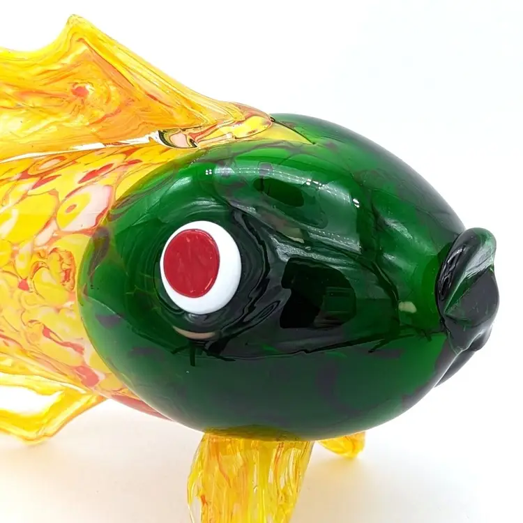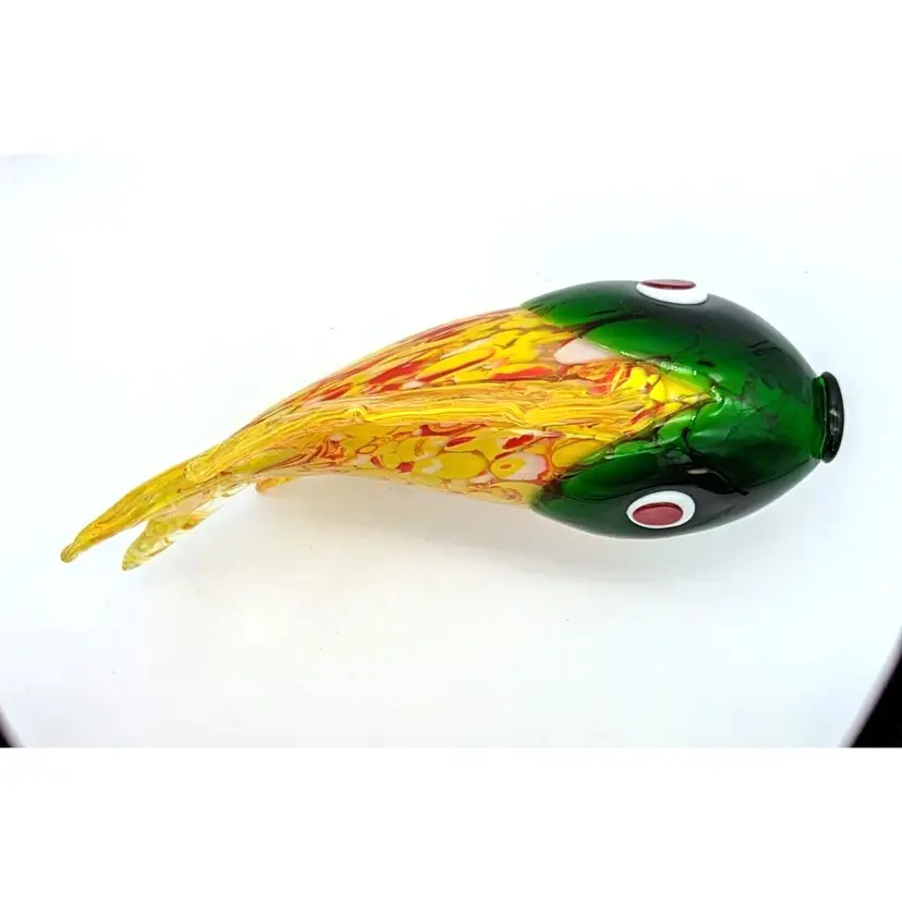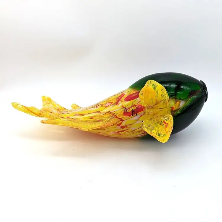 Large Murano Style Hand Blown Art Glass Fish Figurine Yellow Green and Red