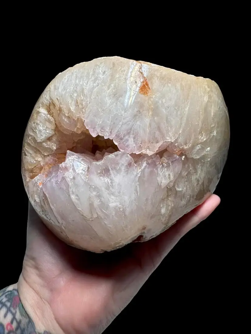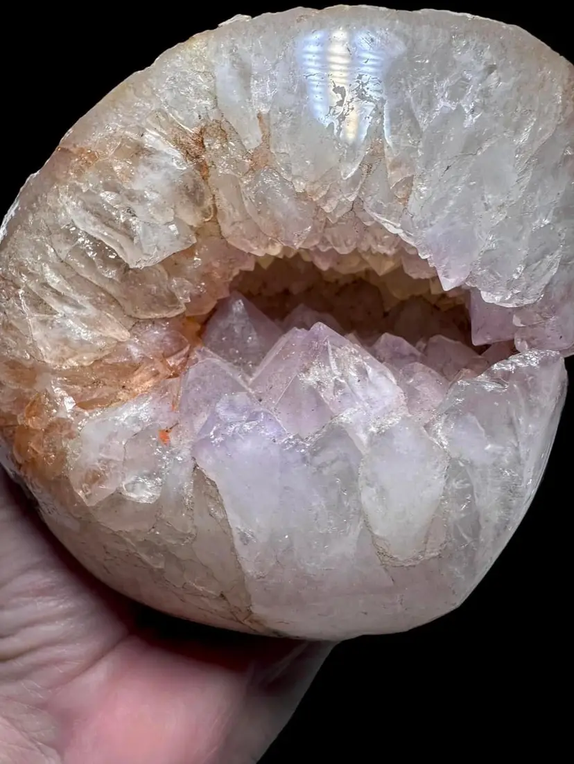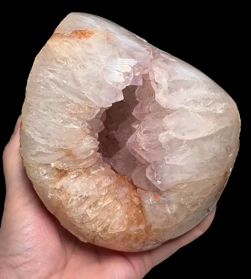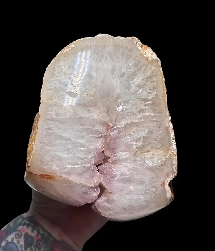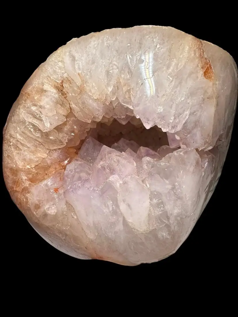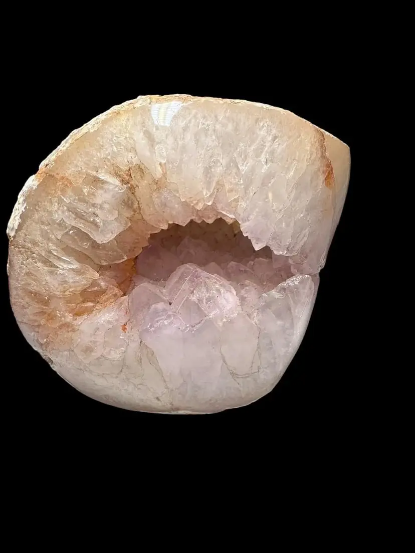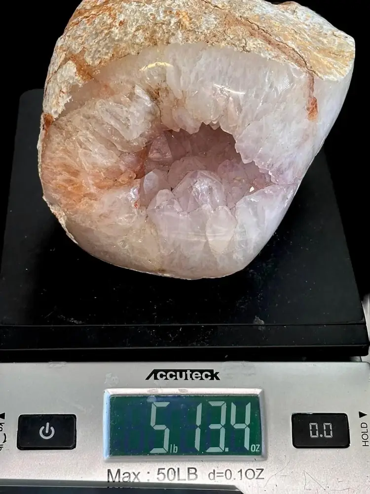 Very large pink amethyst geode - it’s a beautiful display piece! It weighs 5 pounds, 13.3 ounces. It has not been altered other than being polished on two sides to show the pink amethyst. Large crystals!