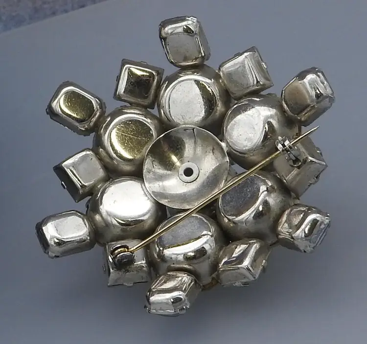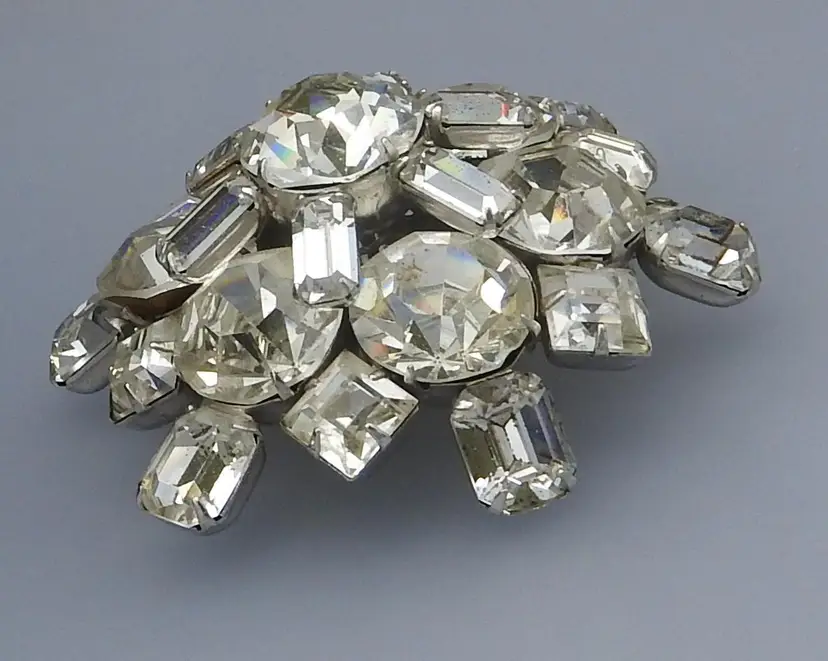 What a wow piece! The rhinestones are different sizes. You will get noticed when you wear this. Measures 2" Condition is very good, no missing rhinestones, working closure Signed/Unsigned Unsigned Item p300