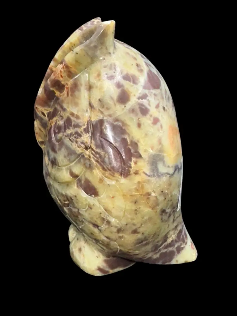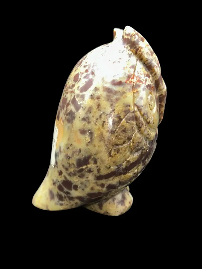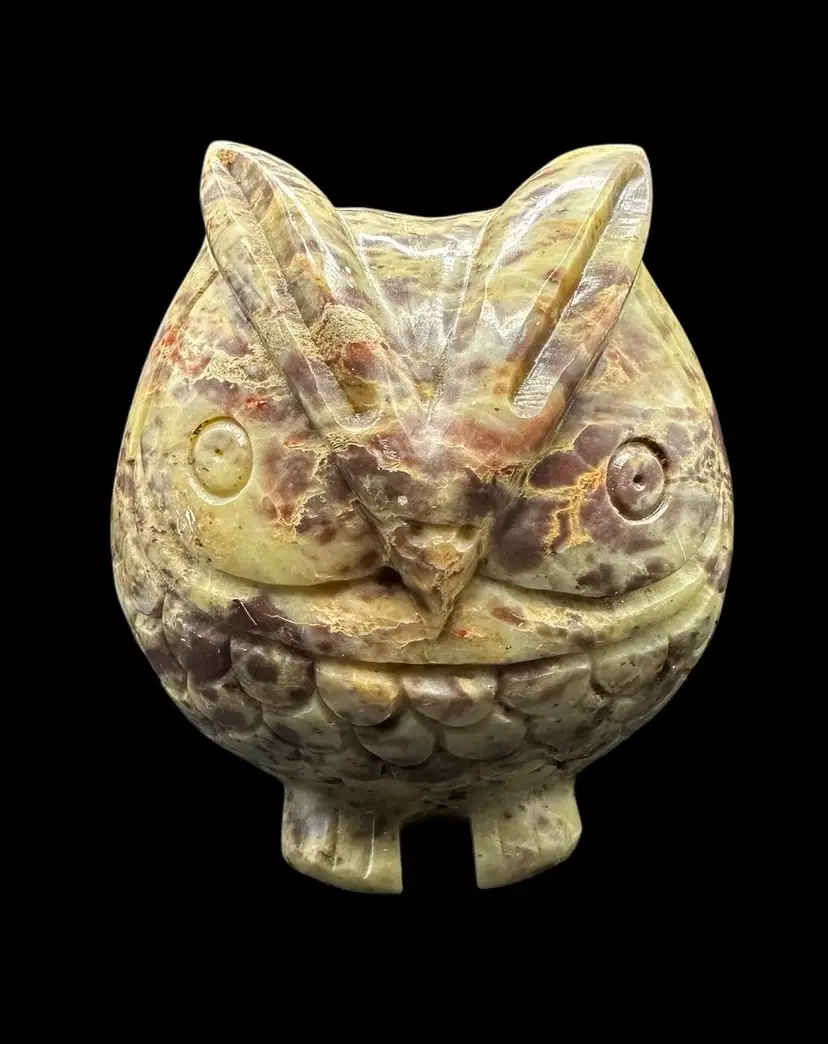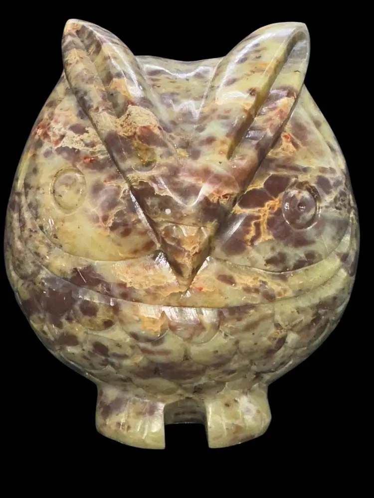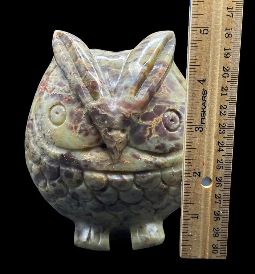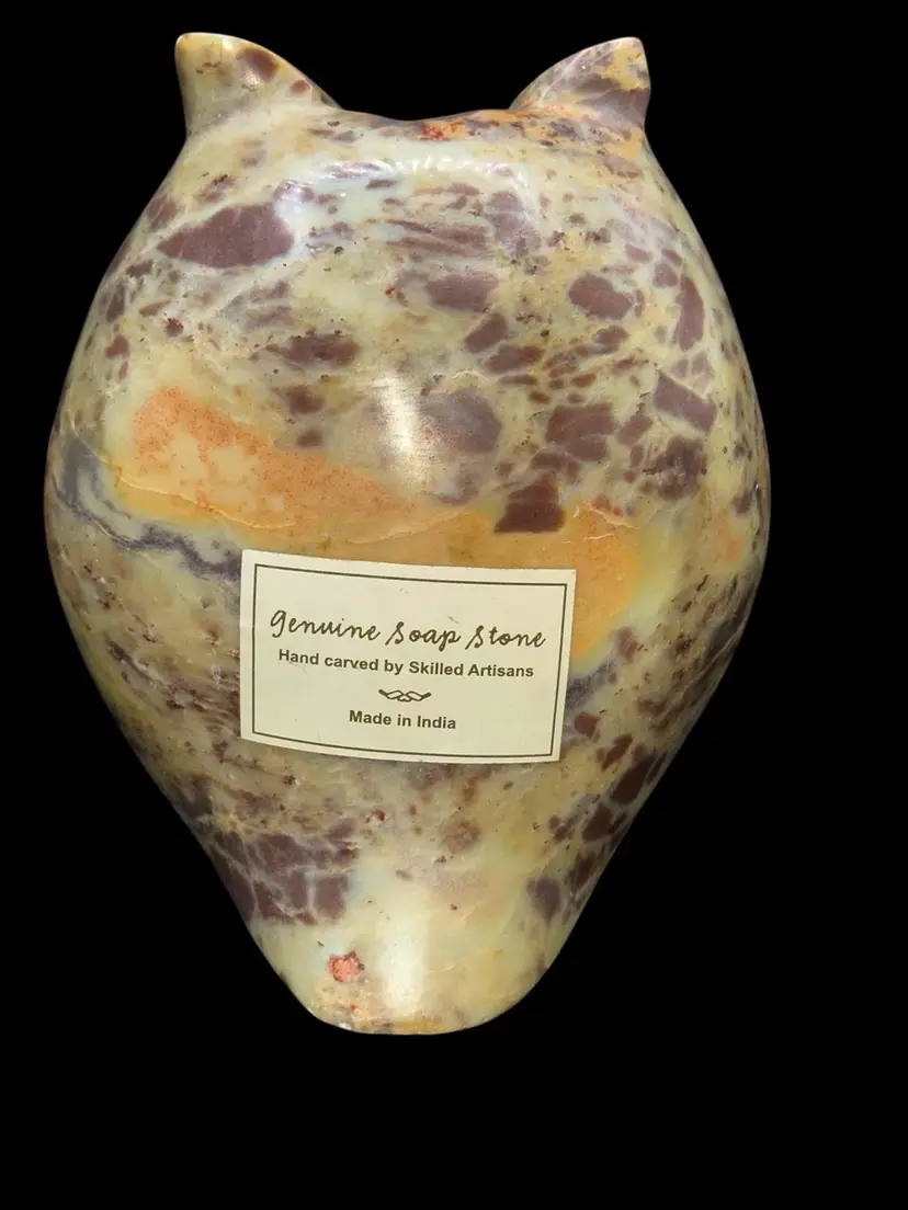 Heavy soapstone carved owl, measuring 5” tall. No chips or cracks. Quite heavy, weighing 3.75 pounds.