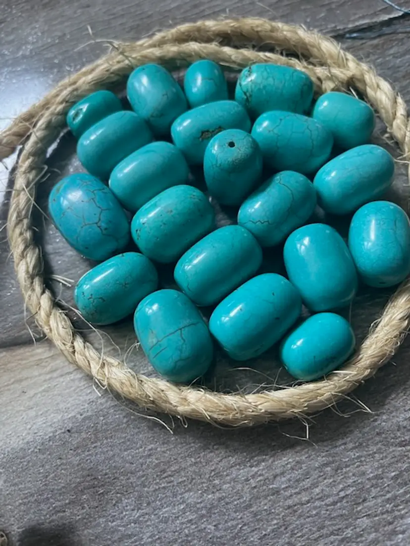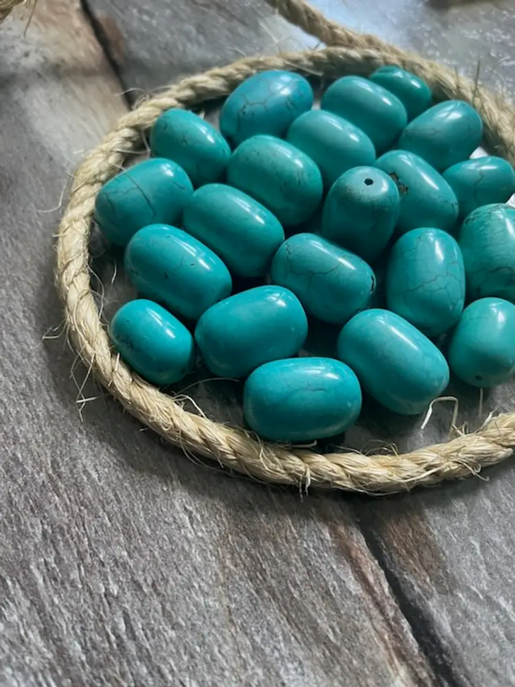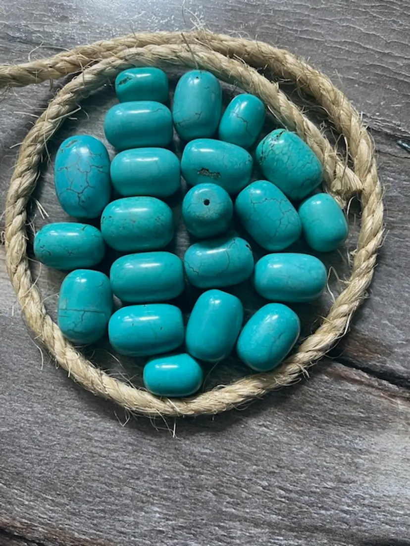 Gorgeous large Turquoise Beads. Barrel Shape with two sizes. The larger being approximately 1 inch and the smaller 3/4 inch. You'll love the color!