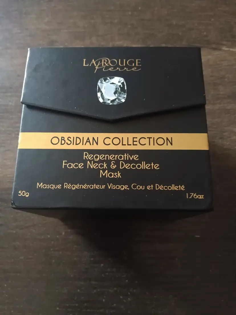 Experience high-end skincare with LaRouge Pierre’s Obsidian Collection. This regenerative mask targets the delicate areas of the face, neck, and décolleté with advanced anti-aging ingredients. Designed to hydrate, firm, and restore radiance, it helps minimize fine lines and improve elasticity for a youthful glow. Presented in a premium black and gold gift box with applicator spoon, this luxury treatment offers spa-quality results at home. Perfect for skincare enthusiasts or as a sophisticated gift. New and unused.