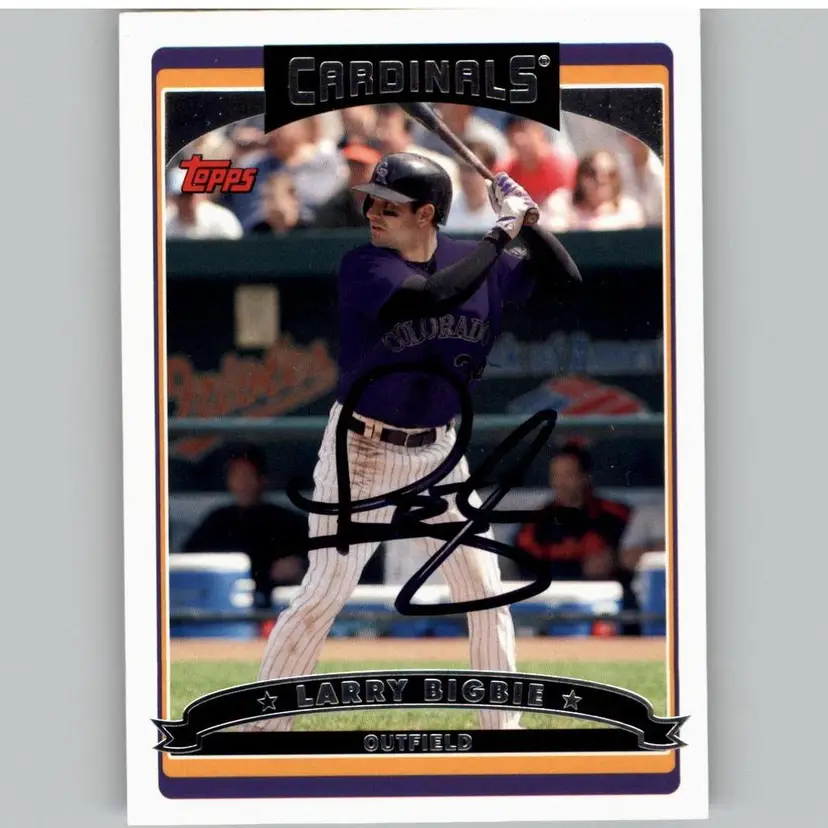 Collectible 2006 Topps baseball card featuring Larry Bigbie of the St. Louis Cardinals, graced with his authentic signature. A must-have for Cardinals fans and autograph collectors. Support our veterans with your purchase, aiding Signatures For Soldiers in their mission.