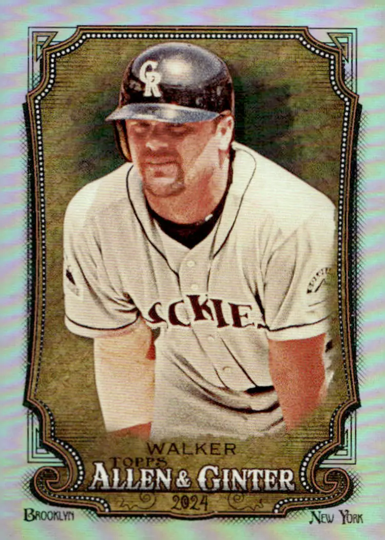 1st time buyer? Get $5 Off with code DISTRICT5 at checkout! Card as shown. All cards $20 and under ship PWE via lettertrackpro [https://www.letter-track.com/registerap.asp?AFID=8757] Sport: Baseball Set: 2024 Allen & Ginter Parallel/Variety: Silver Card Name: Larry Walker - Colorado Rockies Player/Athlete: Larry Walker Team: Colorado Rockies Card Number: 326 Season: 2024
