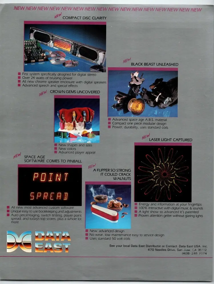 Brand: Data East Year: 1987 Country/Region of Manufacture: United States