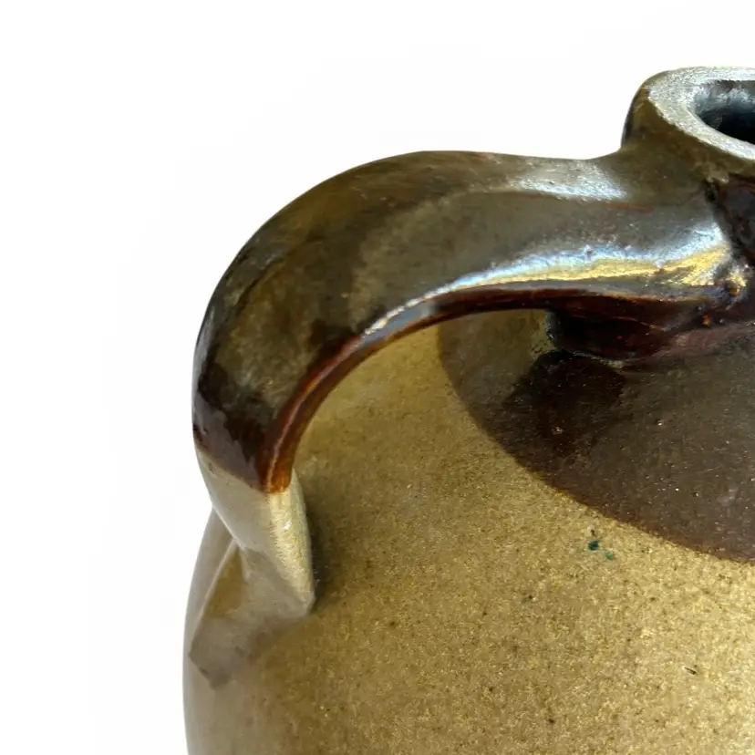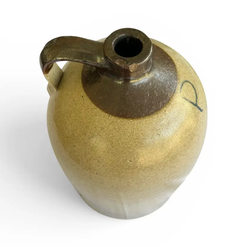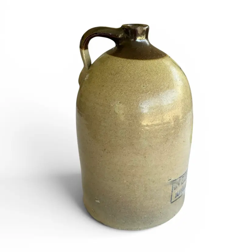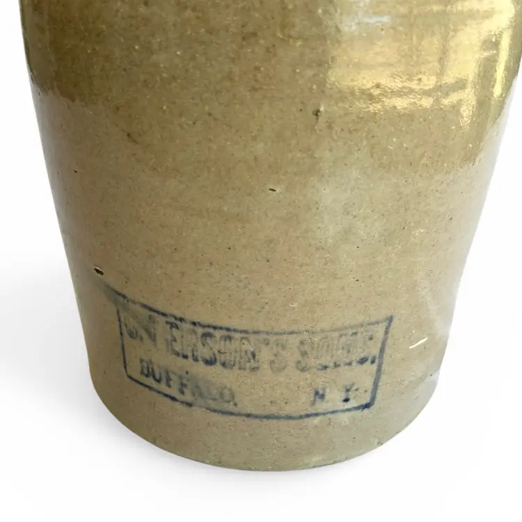 This Antique American stoneware jug from C. Persons Sons features a distinctive blue maker’s stamp, signaling its origins in the renowned artisan workshop. Dating from the late 19th to early 20th century, the jug presents a robust, utilitarian silhouette: a tall, stout body with a broad shoulder, a gracefully arched neck, and a sturdy handle securely attached for generations of use. The salt-glazed surface carries the characteristic rich, warm tones of traditional American stoneware, with subtle color variation and a mellow patina that speak to its age and authenticity. The maker’s blue stamp—clearly impressed within the ware—adds provenance and collectible appeal for stoneware enthusiasts and connoisseurs of American industrial-era pottery. This item is commensurate with age. Size" 8" x 15" | Weight: 11 lbs.