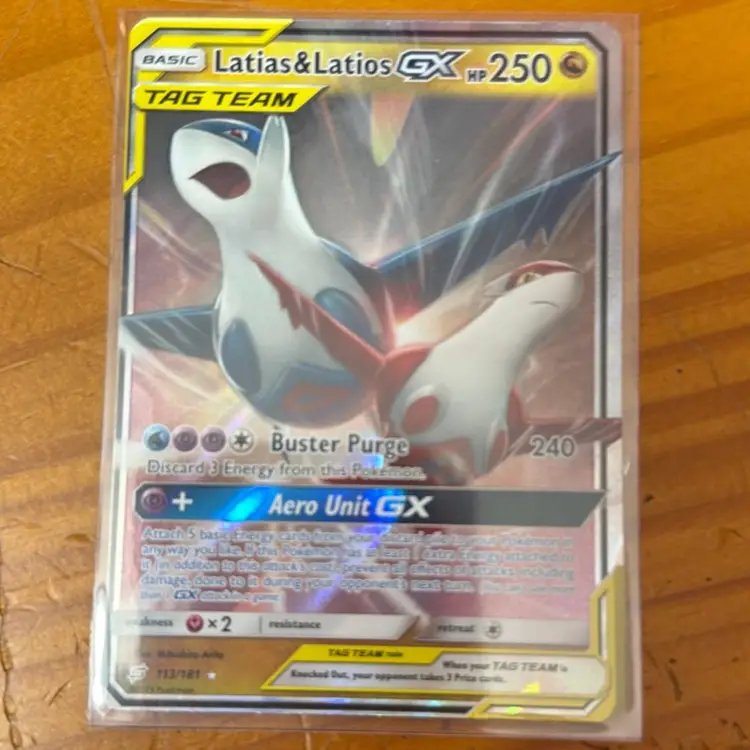 The TCGplayer market price for the Latias & Latios GX card, number 113/181 from the Sun & Moon - Team Up set, is approximately $67.27