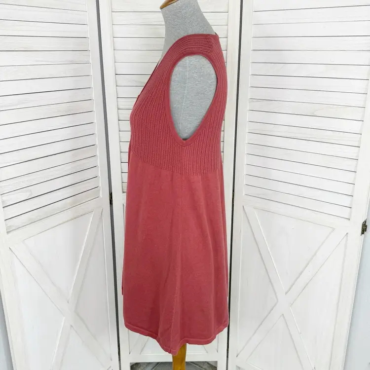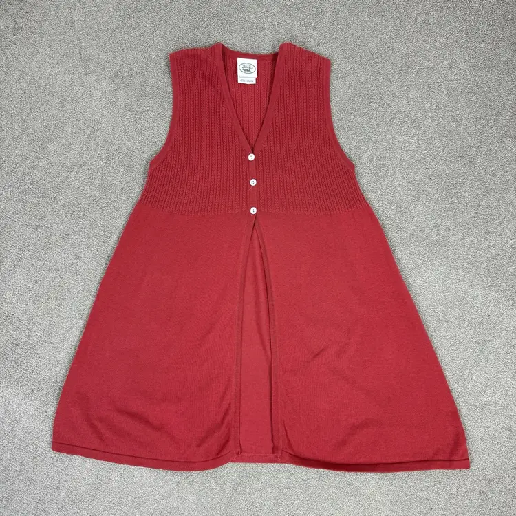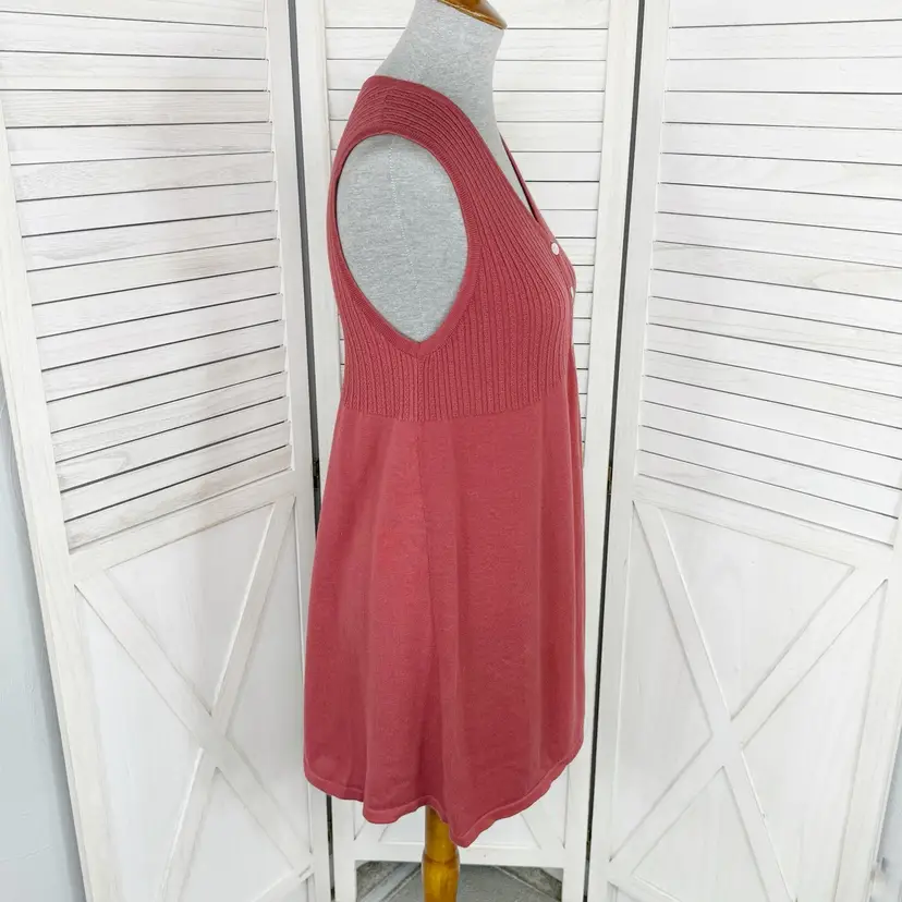 Laura Ashley Split Front Sleeveless Tunic Sweater Rust Red