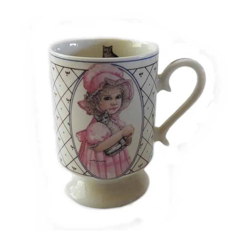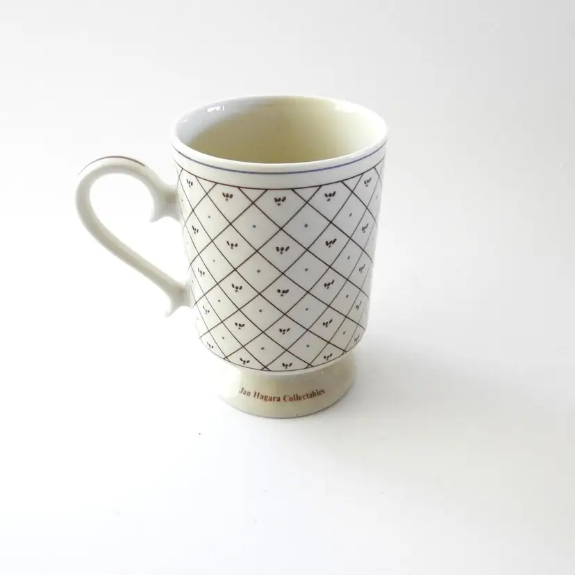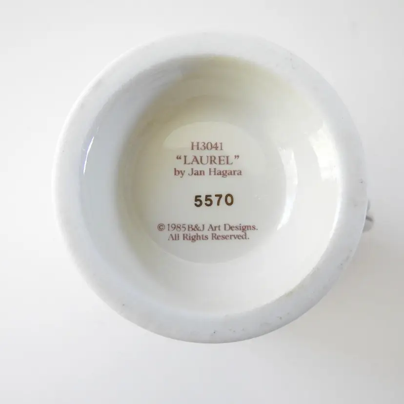 Vintage ceramic Laurel pedestal coffee mug by Han Hagara. Fine bone chine, made in 1985 by B & J Arts Design, model H304, #5570. Excellent condition, no cracks, no chips. 9 oz capacity, 2.75" diameter, 4.25" high. Excellent gift idea for her.