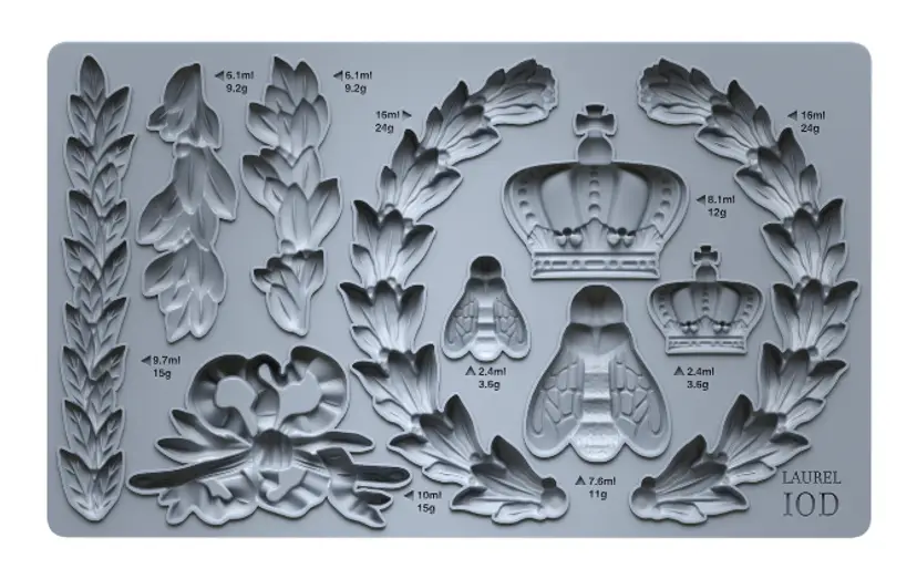 IOD moulds are much higher quality than traditional moulds. They have a micro rim. This is a small raised edge around each mould cavity that makes getting a crisp, clean edge along the base of your casting easy-peasy. The micro rim also allows you to quickly smooth and level the back of your casting so it will sit flush on your project surface. Use a fine dusting of cornstarch for moulds with very fine details so that the mould comes out crisp, and clean!