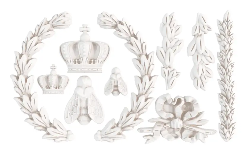 The IOD Décor Moulds are made from food-safe materials and can be used to transform and create baked goods, furniture, soaps, jewelry, and IOD Air Dry Clay, which is available for purchase on the site.