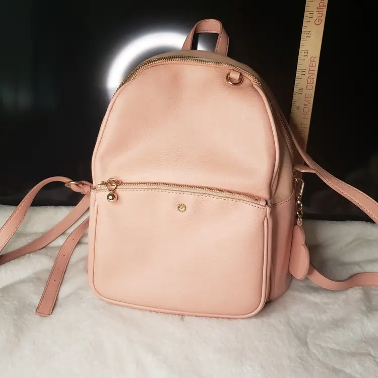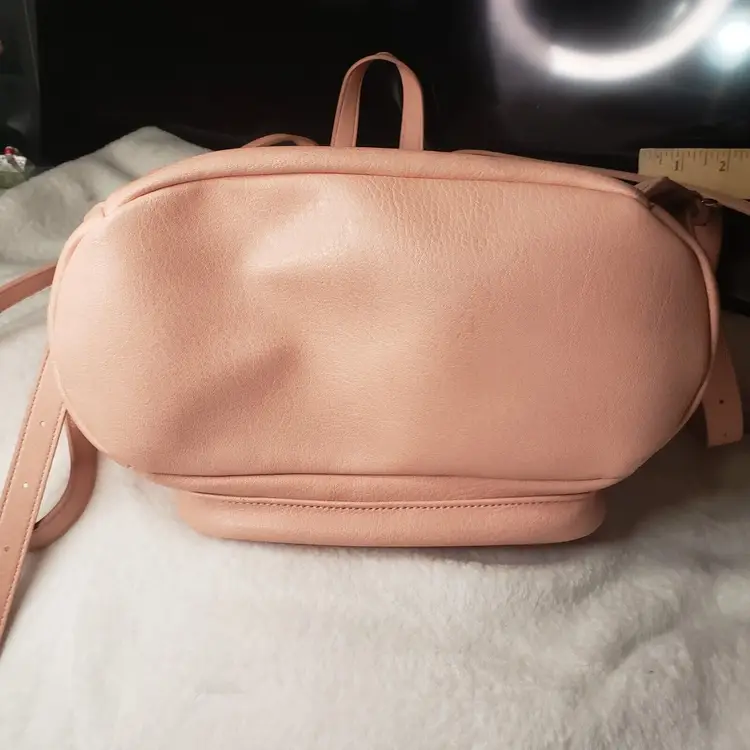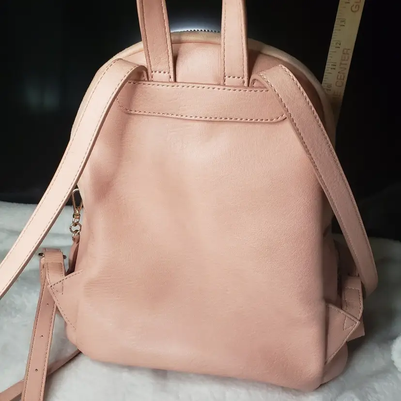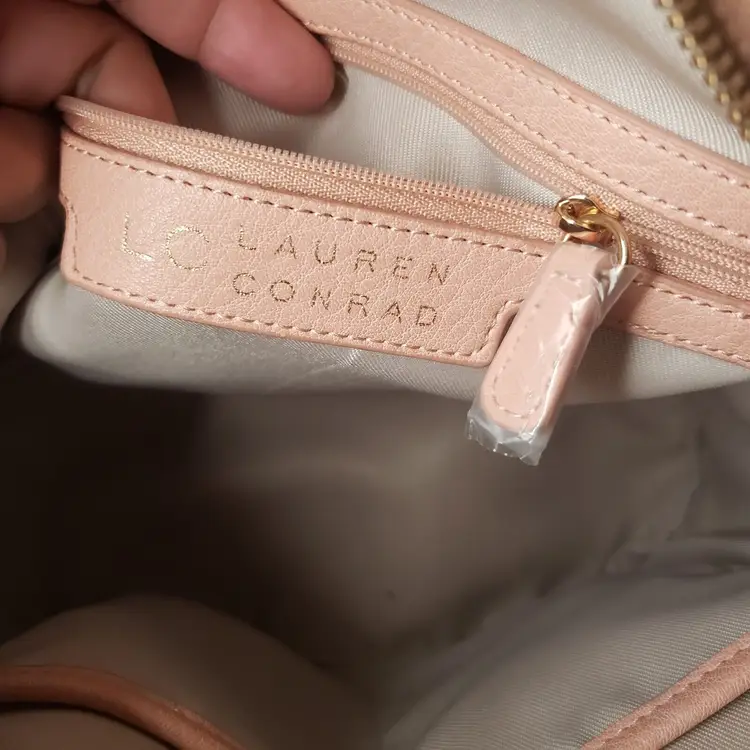 Bag Width: 12 in Pattern: Solid Bag Height: 12 in Closure: Zip Handle/Strap Color: Pink Size: Medium Hardware Color: Gold Bag Depth: 6 in Exterior Material: Faux Leather Vintage: No Brand: LC Lauren Conrad Accessories: Bag Charm Department: Women Exterior Color: Pink Lining Color: Pink and beige Style: Backpack Theme: Elegant Features: Adjustable Strap, Zip-Around Product Line: Lc By Lauren Conrad