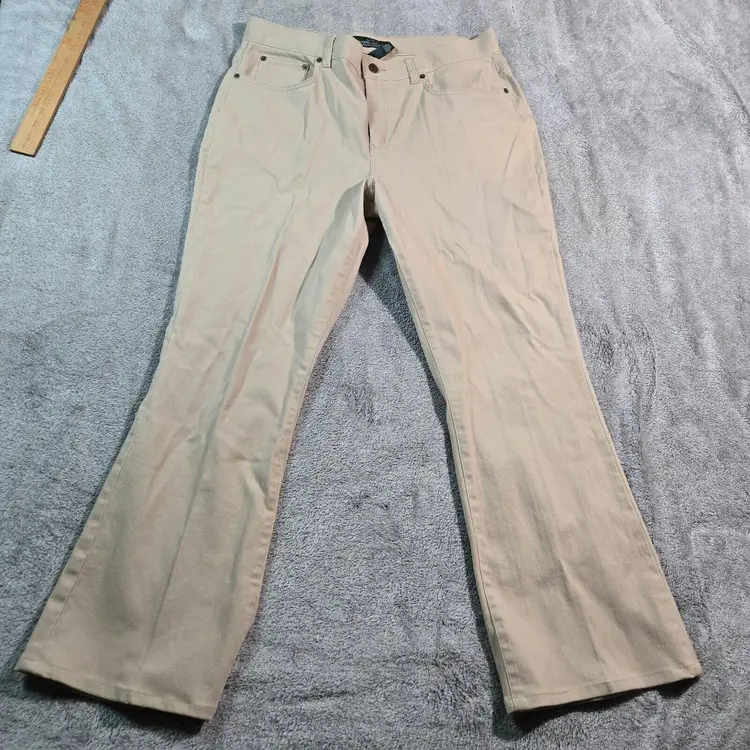 – Closure: Button, Zip – Size: 14 – MPN: 209167978923 – Fabric Type: Denim – Vintage: No – Rise: High (Greater than 10.5 in) – Personalize: No – Department: Women – Pocket Type: 5-Pocket Design – Inseam: 28 in – Style: Bootcut – Features: Pockets, Slimming, Stretch – Season: Fall, Winter – Handmade: No – Pattern: Solid – Fabric Wash: Dark – Garment Care: Machine Washable – Color: Beige – Material: Cotton, Spandex – Brand: Lauren Ralph Lauren – Fit: Classic – Size Type: Regular – Type: Jeans – Model: Classic Bootcut – Theme: American – Country/Region of Manufacture: China