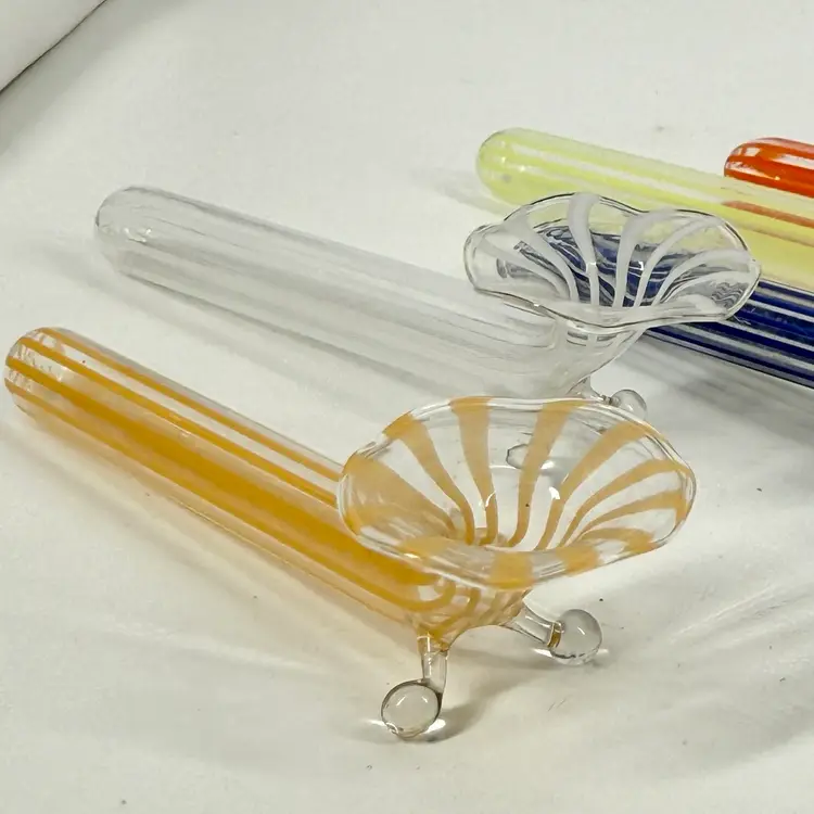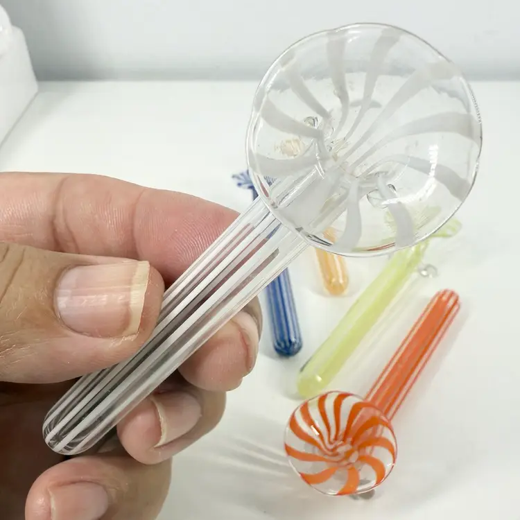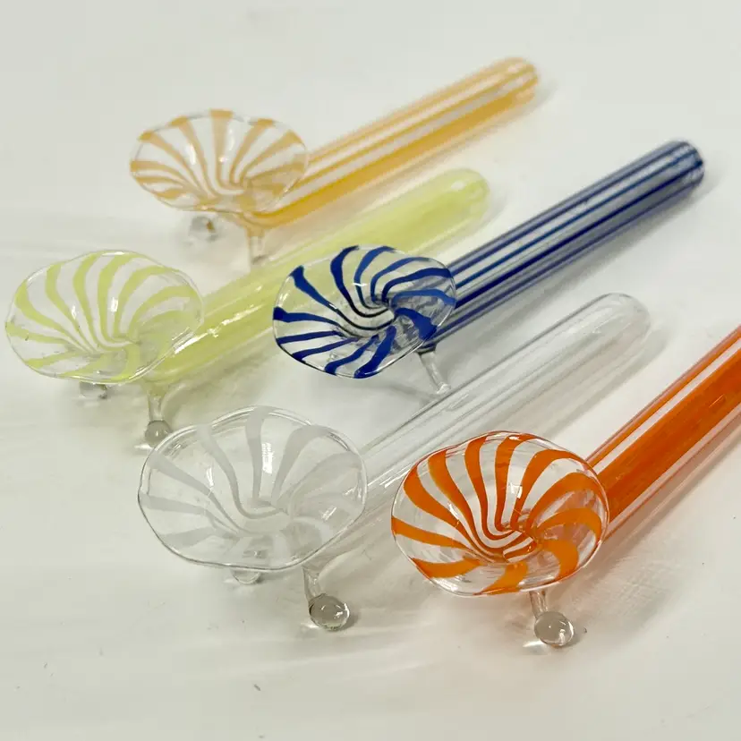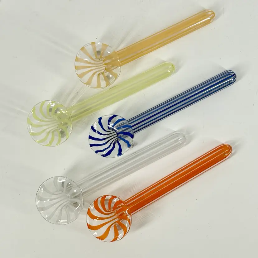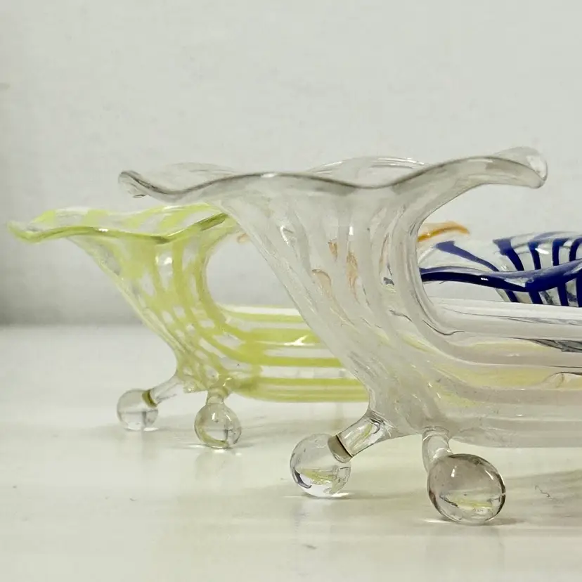 Hi... These amazing LAUSCHA Bimini Orchid Vases/ Knife Rests are a set of stylish and original mid-century modern glassware items from Germany. Handmade with glossy, candy-striped glass in the five vibrant colors, these 3.5-inch vases add a touch of fun retro charm to any table setting. This art glass vintage set is perfect for showcasing springtime and summer flowers, making them a unique and eye-catching addition at your next get together. Made by Lauscha Glass and possible designed by Fritz Lampl, these little vases are a classic example of lglass ampwork craftsmanship from the 1950s.