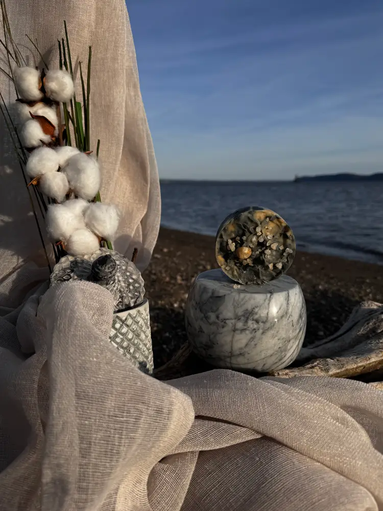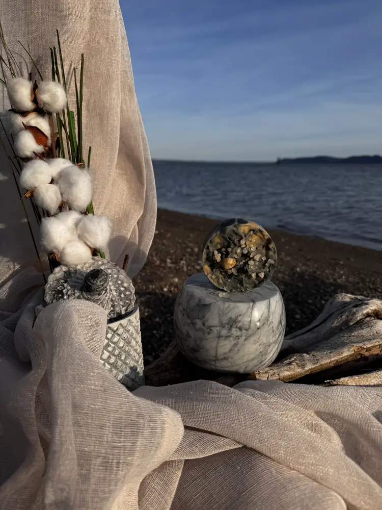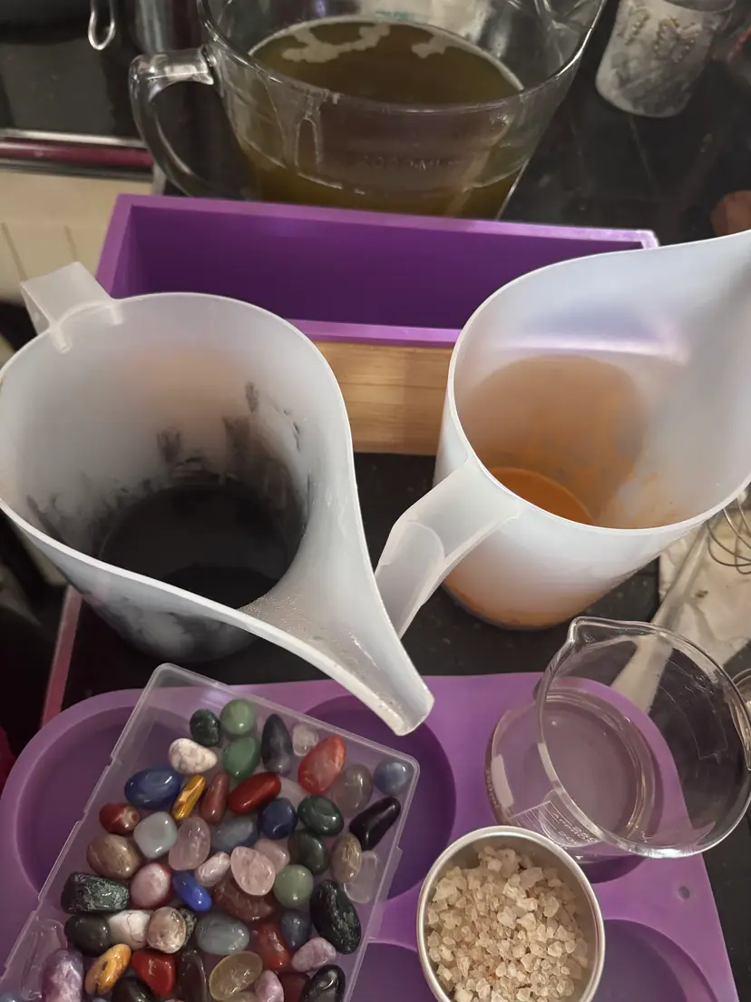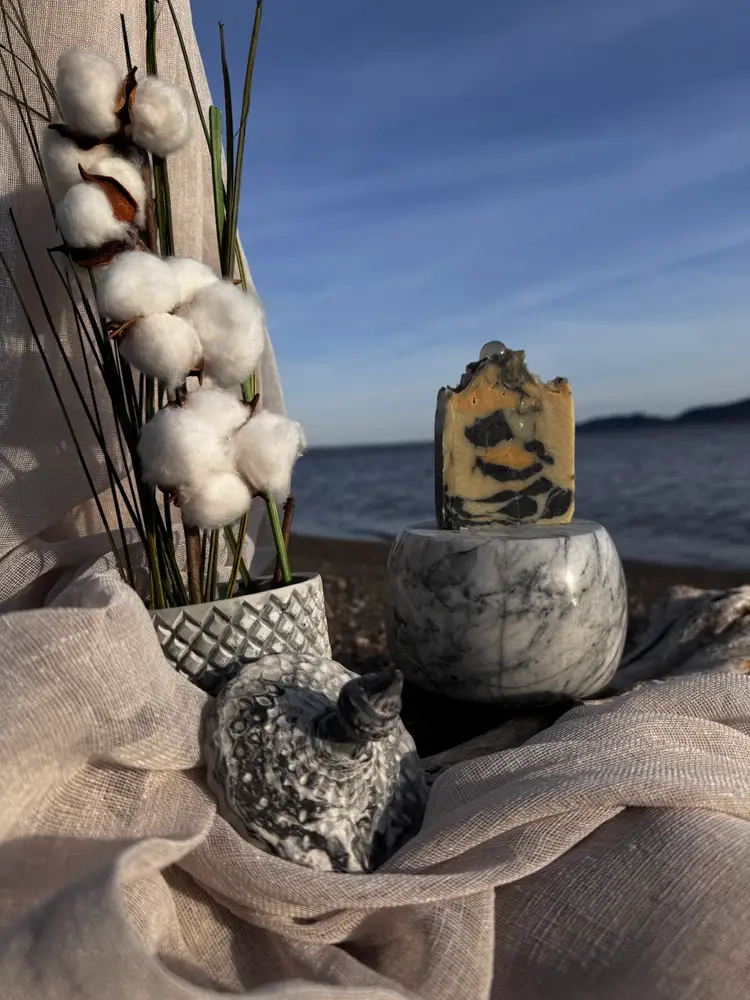 This soap is part of a special BliN soap created with deep intention, blending beauty, healing, and ritual. What sets these soaps apart is the inclusion of a genuine, handpicked crystal stone known for its metaphysical properties, chosen from a wide selection including Amethyst, Clear Quartz, Rose Quartz, Tiger’s Eye, Obsidian, Lapis Lazuli, Ocean Jasper, and more. Every stone is cleansed and energetically charged under a full moon, making each one a truly sacred addition. The crystal is gently embedded in the soap and topped with Himalayan salt for added purification and a spa-like aesthetic. You won’t choose your stone—the universe will guide the one meant for you, promoting a sense of divine alignment and discovery. This isn’t just soap—it’s a ritual in a bar, designed to elevate your daily self-care into a moment of spiritual connection and intention.