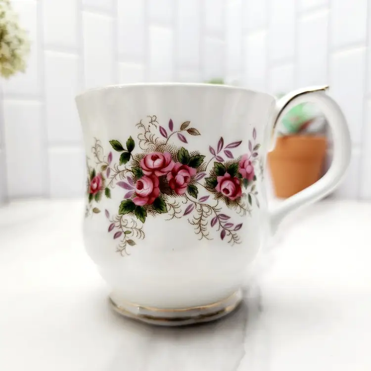 Beautiful Royal Albert Mug, Bone China, Montrose shape with Gold trim & Pink Roses. Lavender Rose pattern. Great find for a Royal Albert Collector.