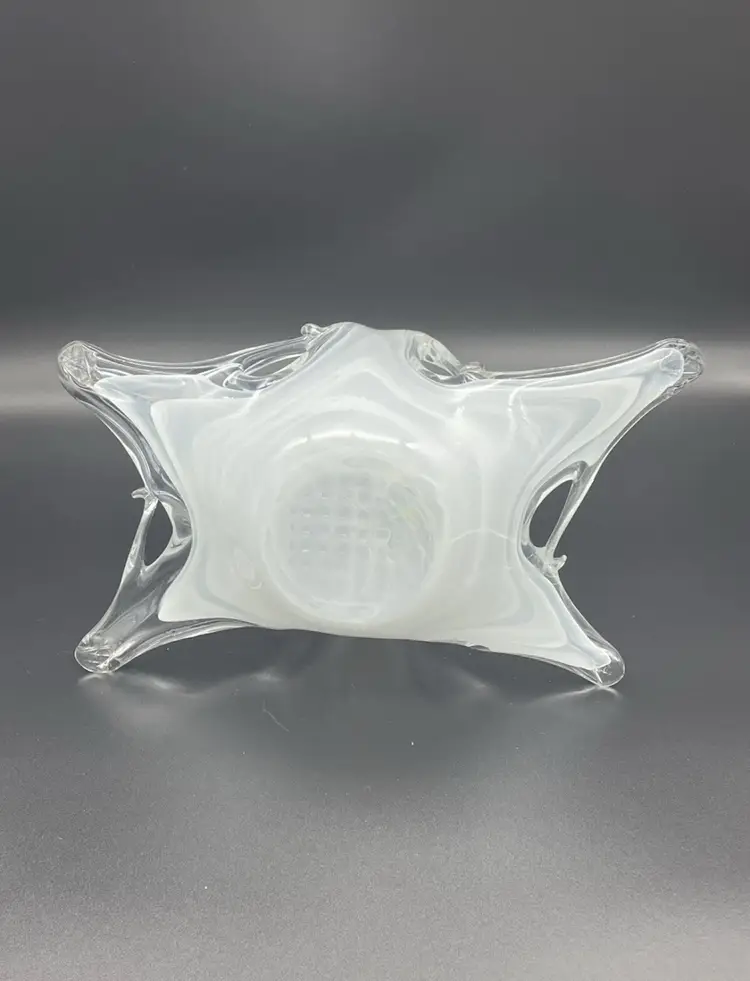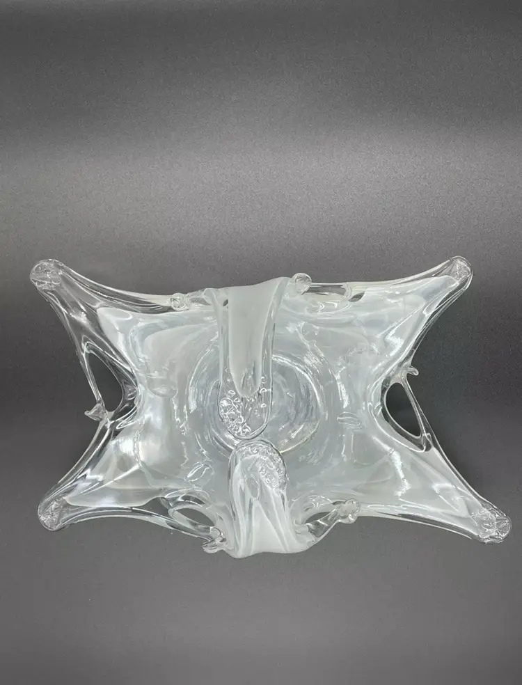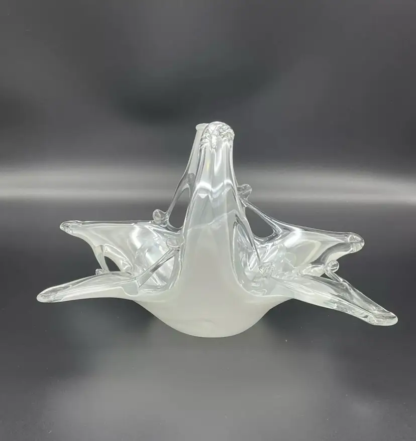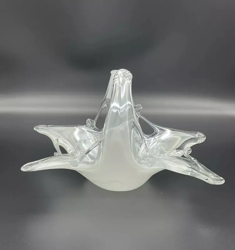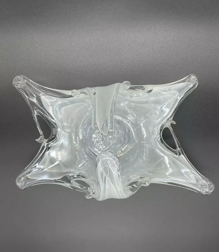 Lavorazione Murano Glass Candy Dish Clear White Vintage Label 1950's Italy