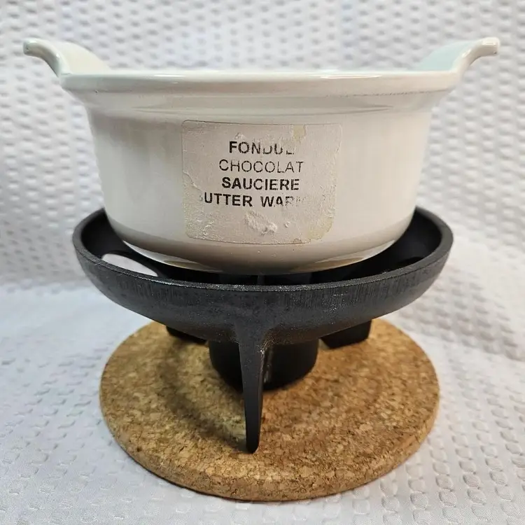 Item in very good used condition with minor signs of wear. Does not include lid or fondue forks/utensils. Please examine all photos. Thank you.