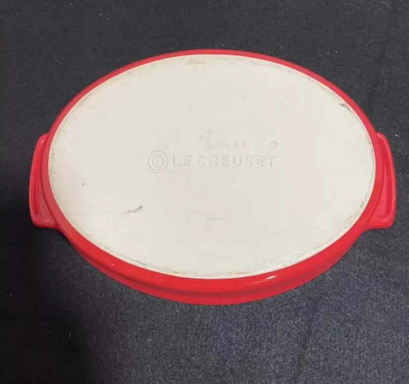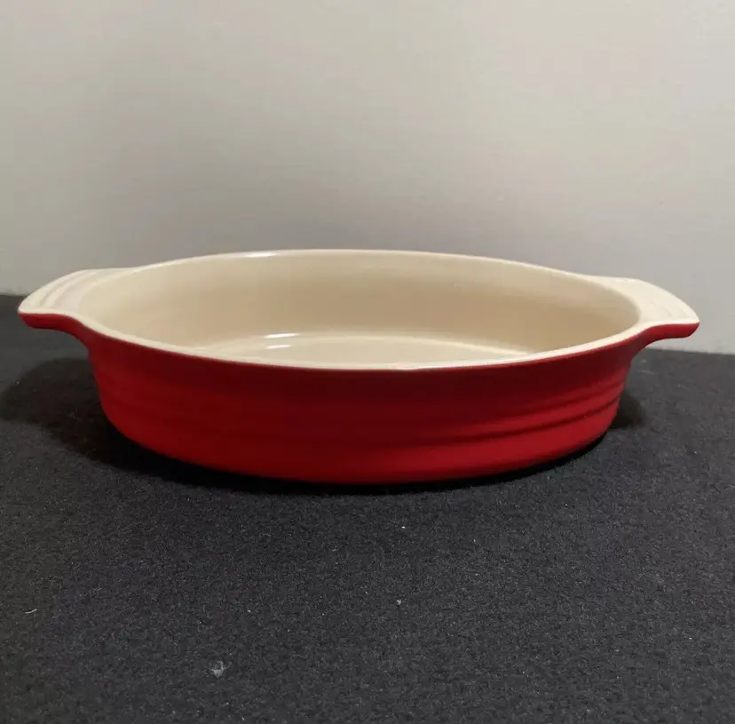 LE CREUSET-Stoneware Cooking/Baking Ceramic 10 1/2“x8''x2'' Oval Dish Red 09-48 Preowned, no visible chips or cracks, see photos for condition details.Hard to find model, perfect for baking!Preowned but appears unused.Thanks for looking!