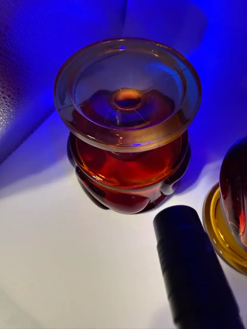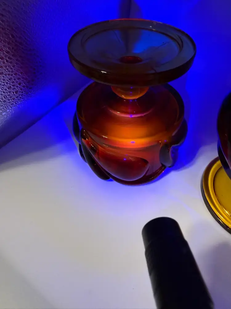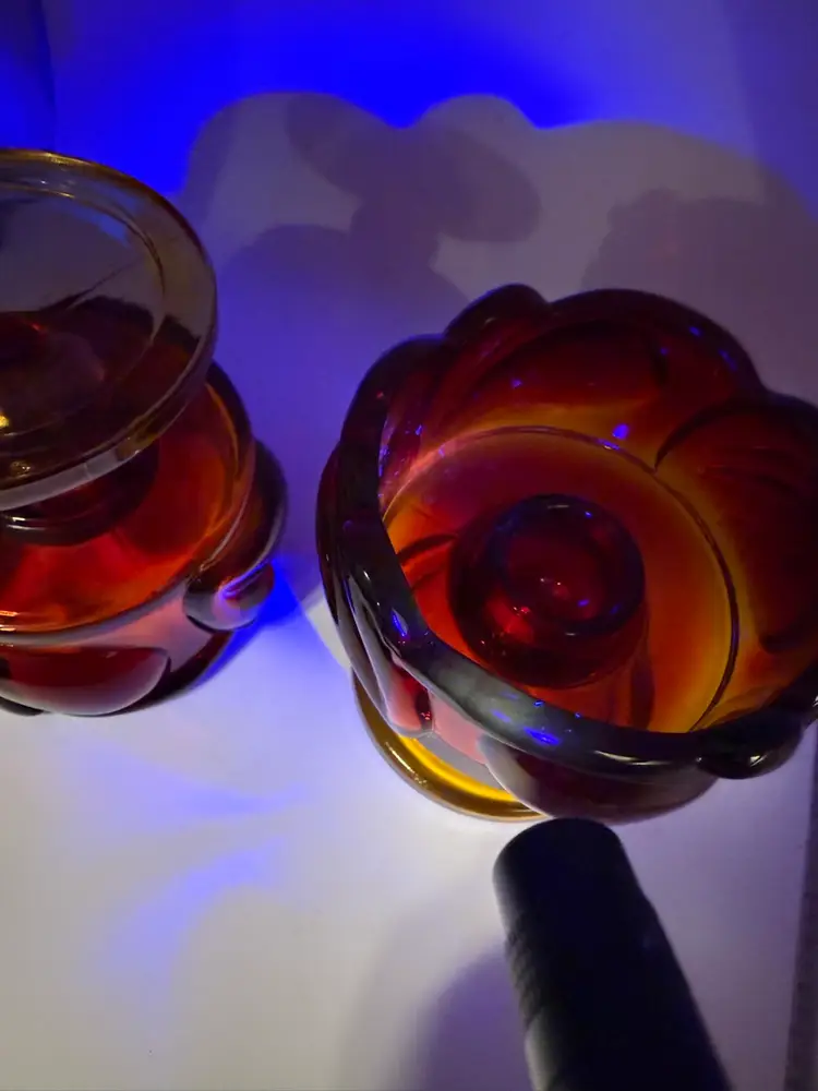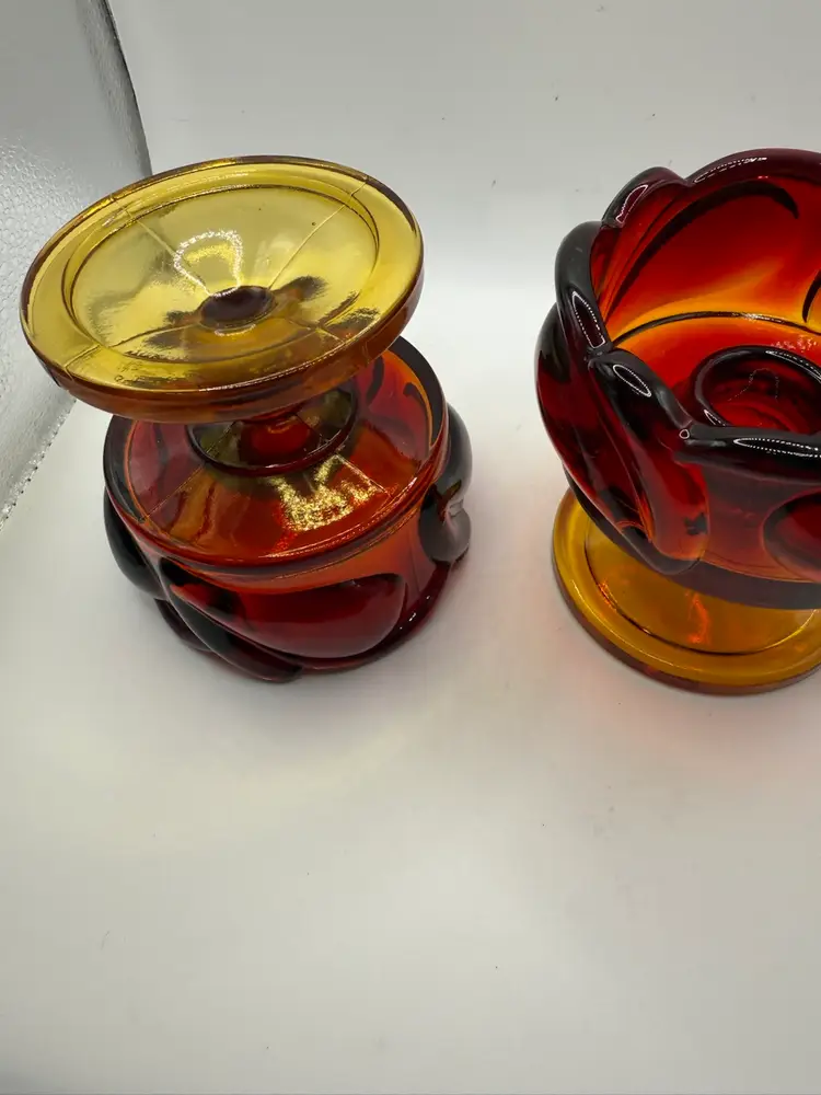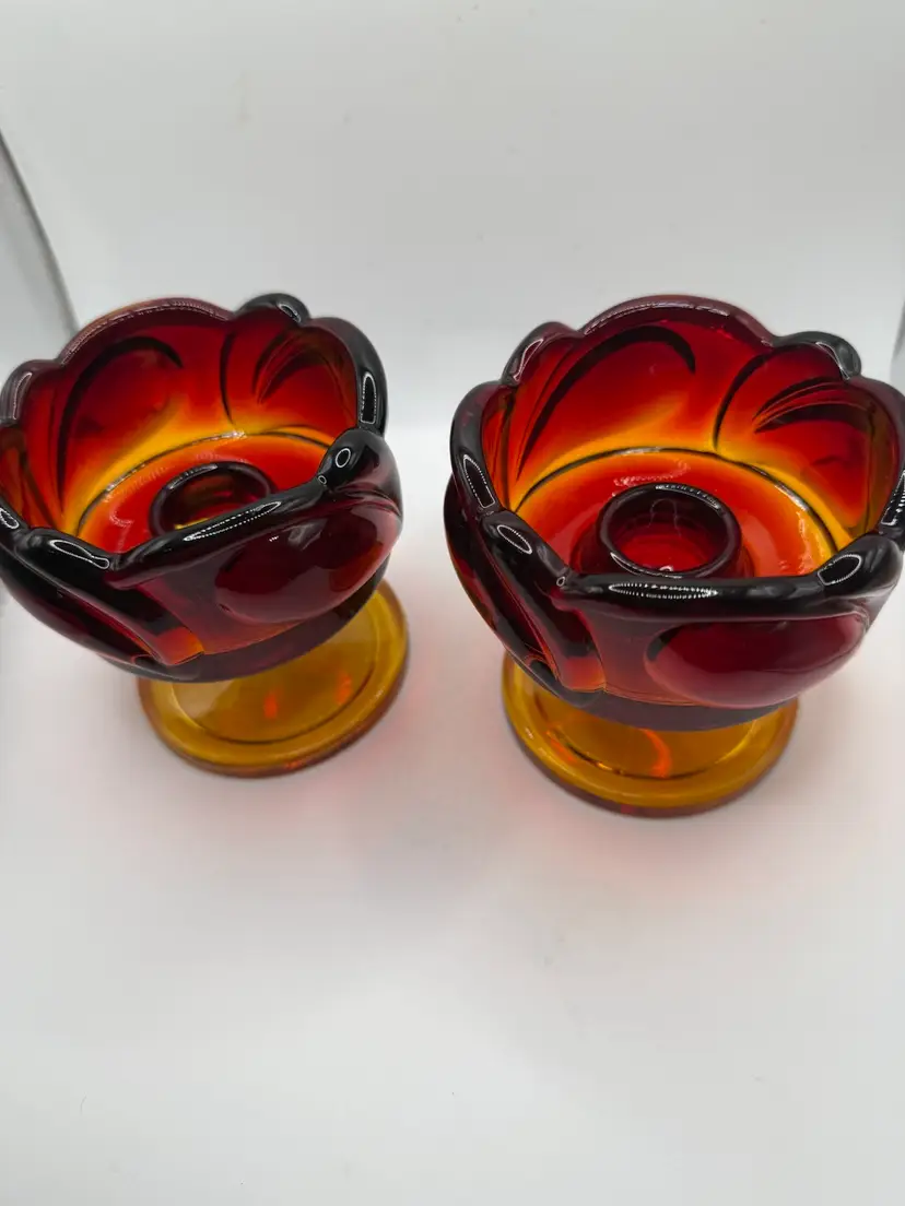 Set of 2 Amberina LE Smith candle stick holders They glow