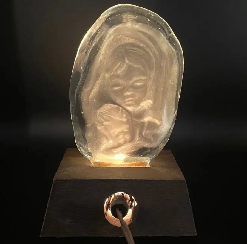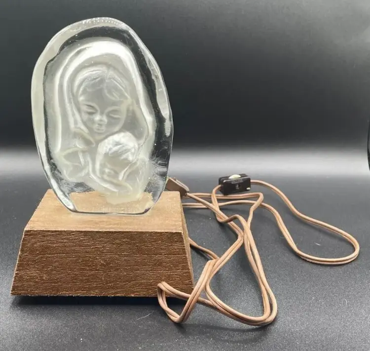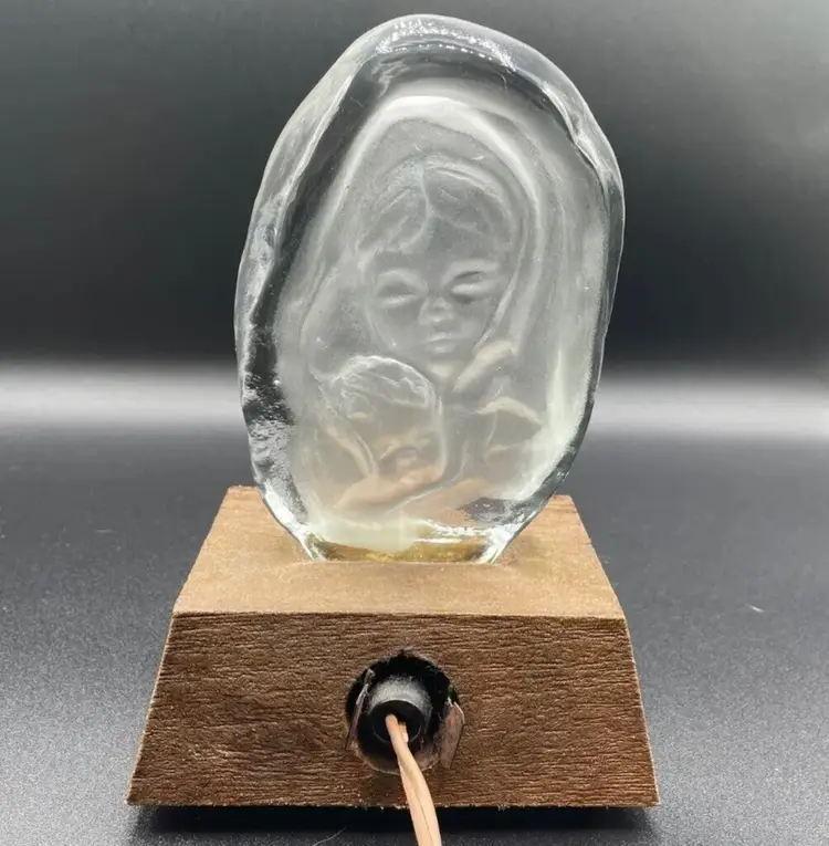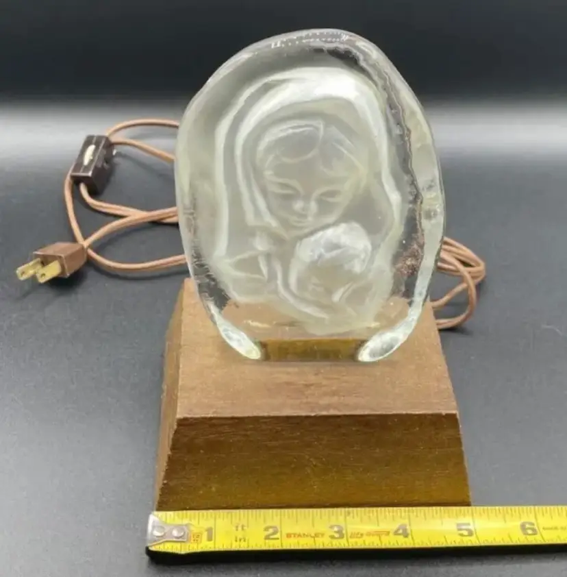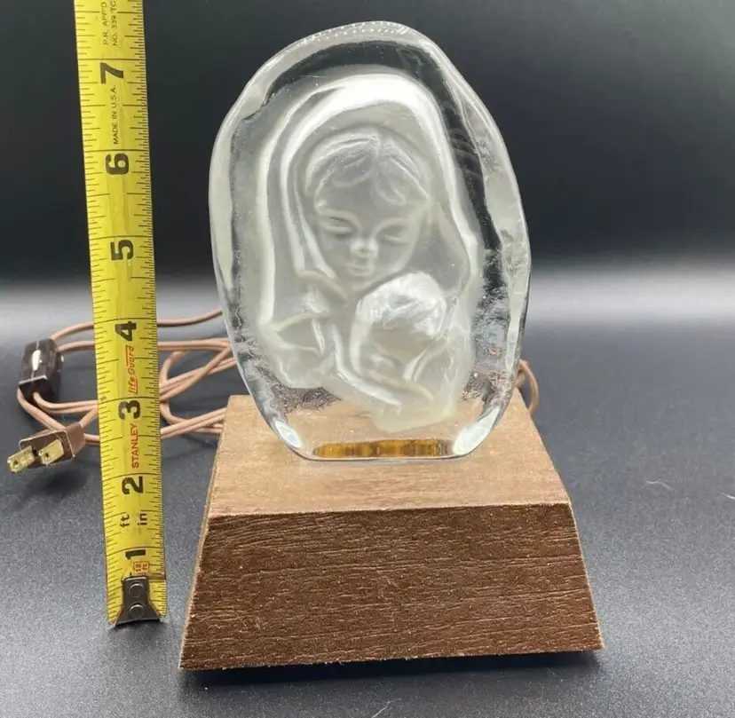 Works beautifully and is a wonderful nightlight or addition to your Christmas lights. Measures almost 8” tall and 5” wide.