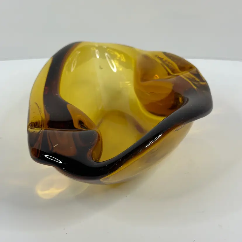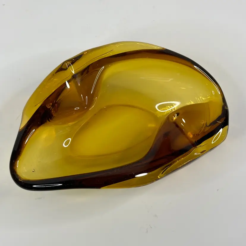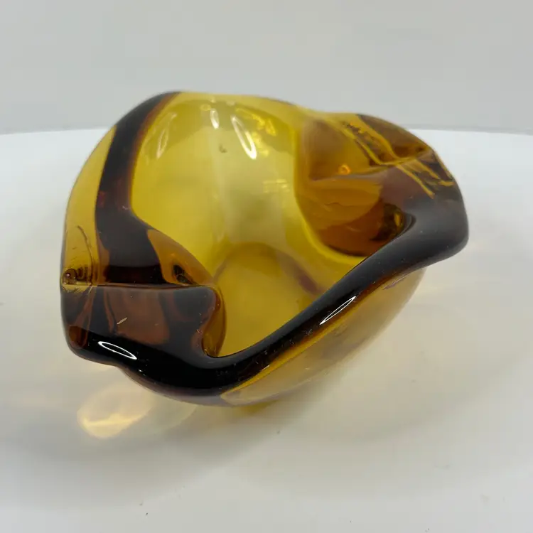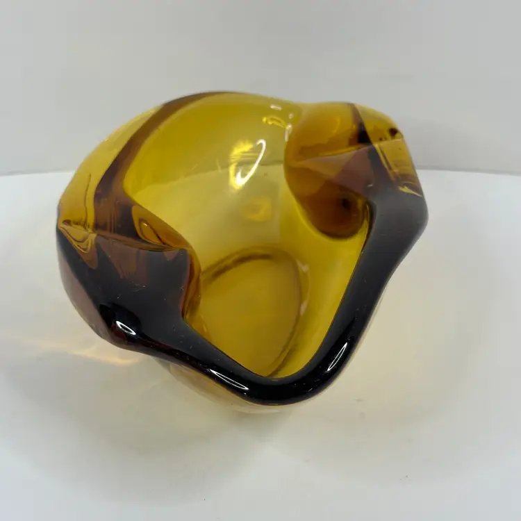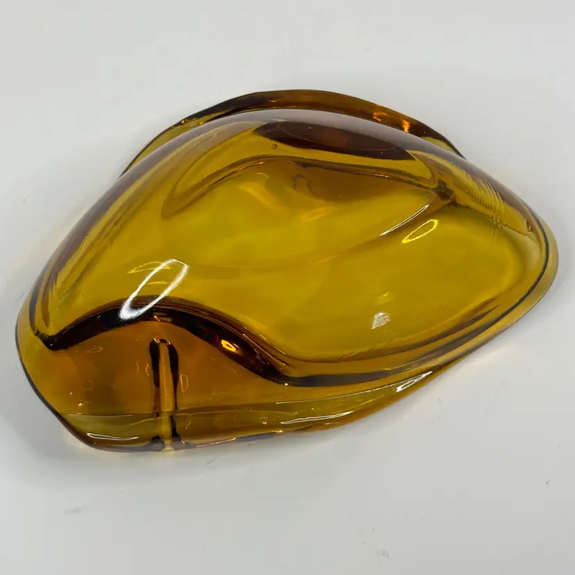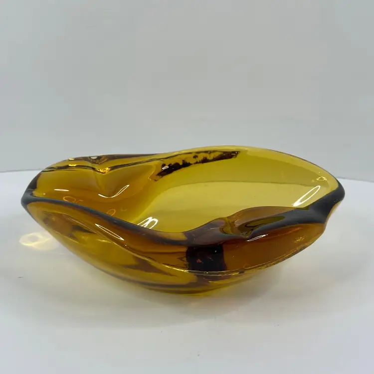 Vintage 1968-72 MCM LE Smith Glass Co Simplicity #3311 Amber Kidney Shaped Ashtray in good preowned condition. Ashtray measures approximately 7.25x4.75x2 inches. No chips, nicks or cracks. Please see photos for all the details.