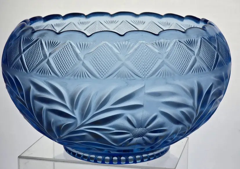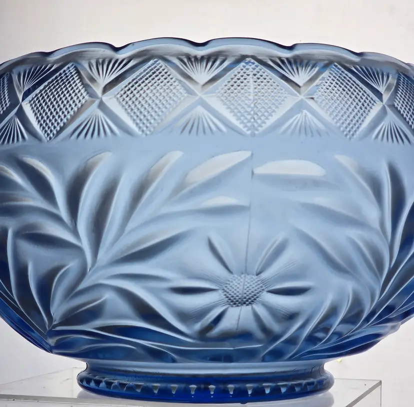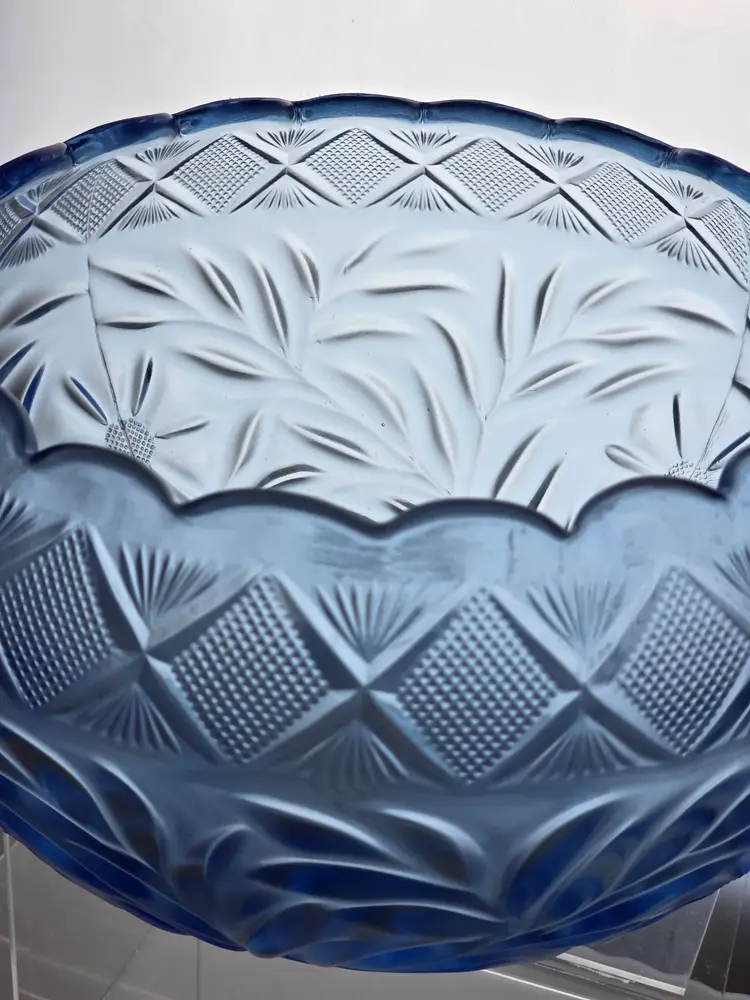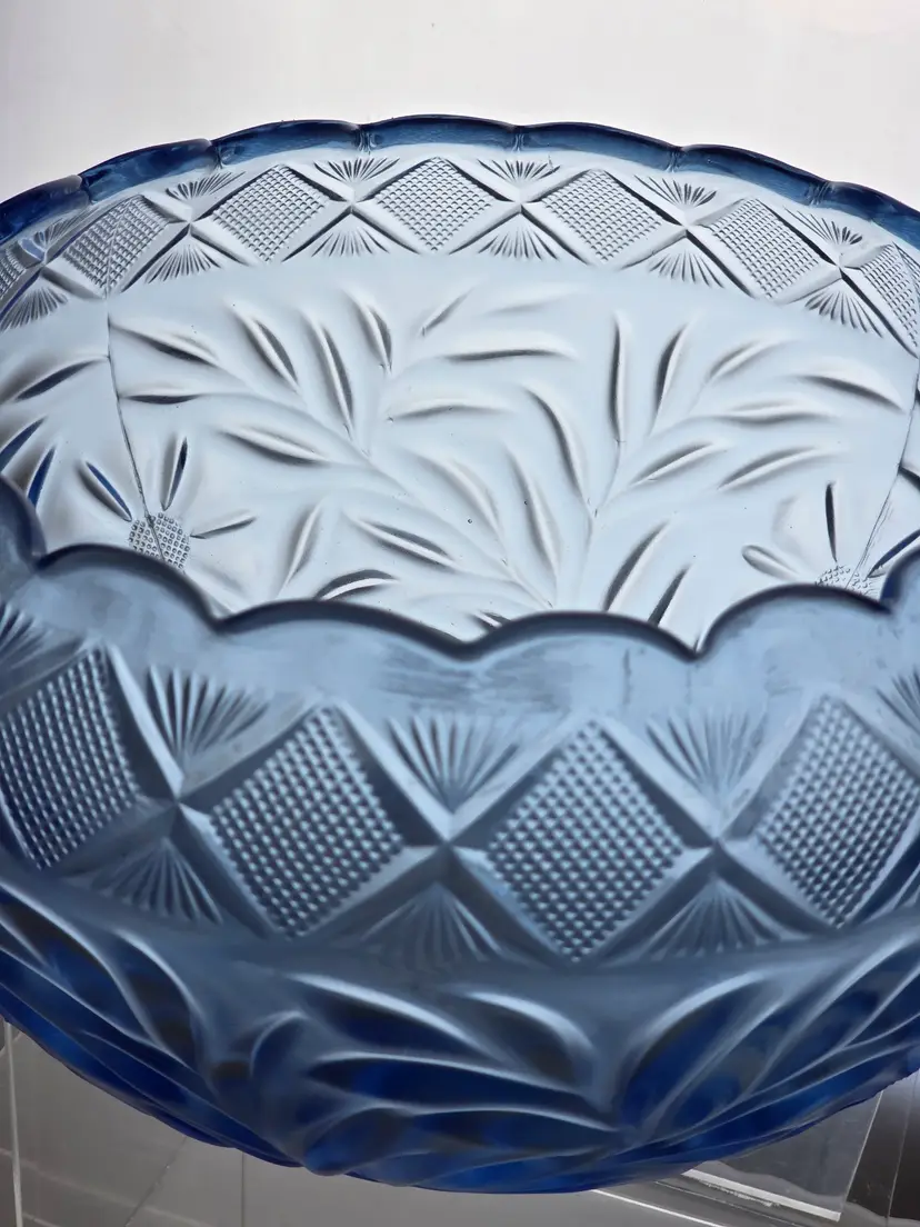 13" in diameter 7.5" high and weighs 10.5 lbs. NIB from the L.E Smith Glass factory Mt Pleasant PA 15666. Can be picked up at the Factory.