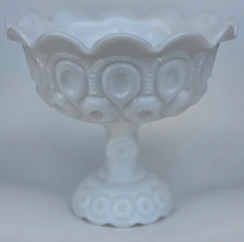 6.5" high 7.5" in diameter. In like new condition no chips cracks or cloudiness
