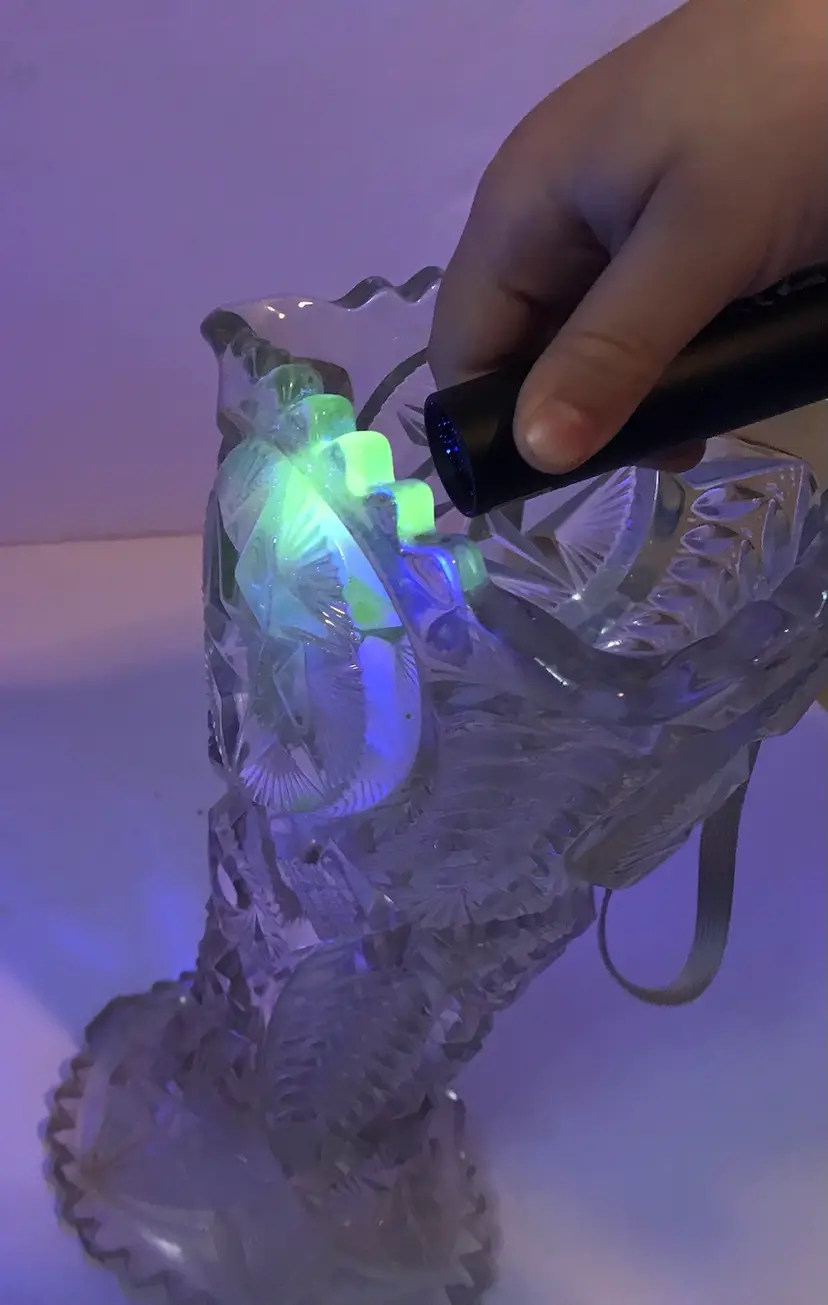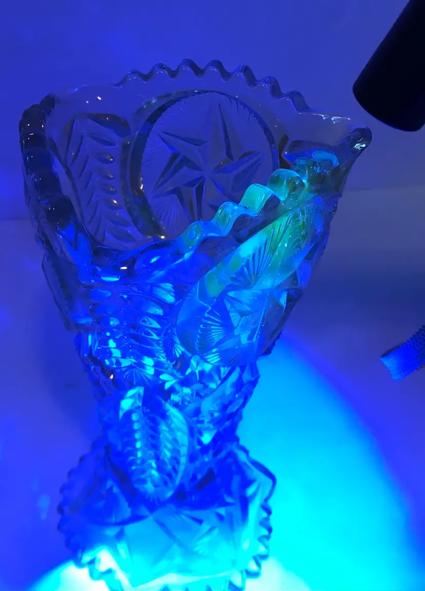 It has uranium glow with 365 light. No chips or cracks. Excellent condition