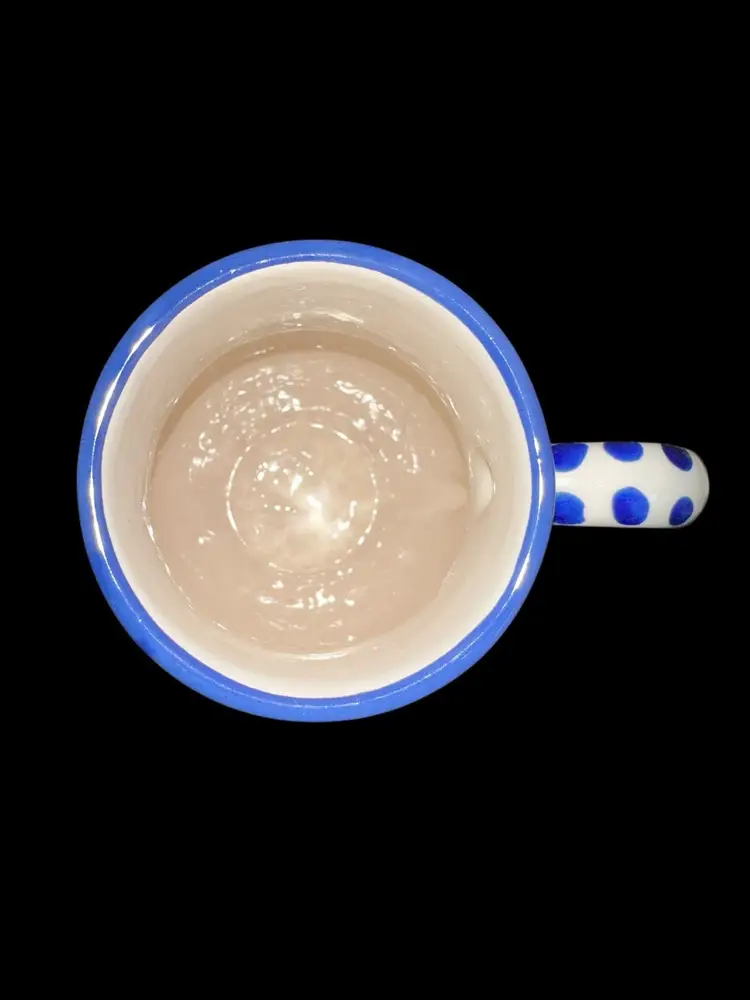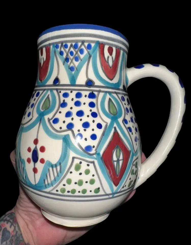 Oversized mug measures 5.85” tall with a 3.15” round diameter at rim. Measures 5.75” wide, including handle.