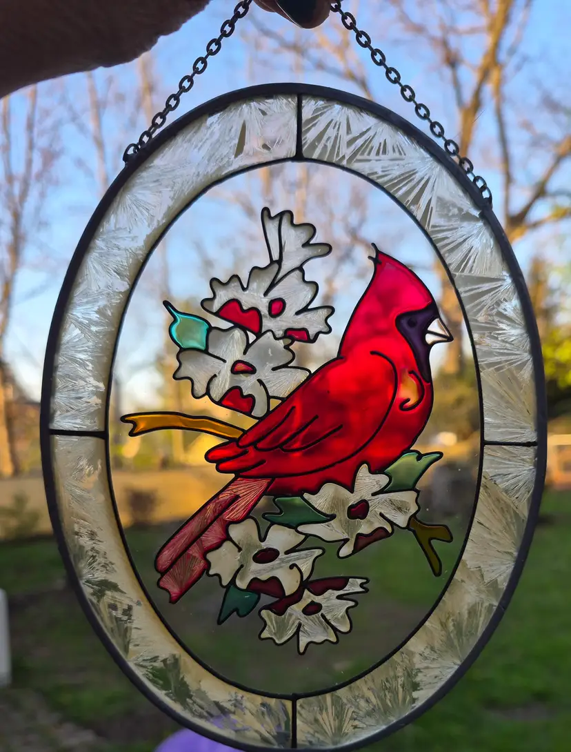Leaded Stain Glass Cardinal Suncatcher 7" x 5 "