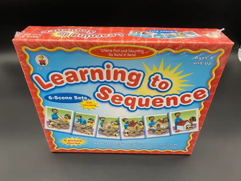 You are purchasing one Learning to Sequence Kid's Educational Card Game by Carson-Dellosa from 2004. This Game is new and sealed in its original packaging.
