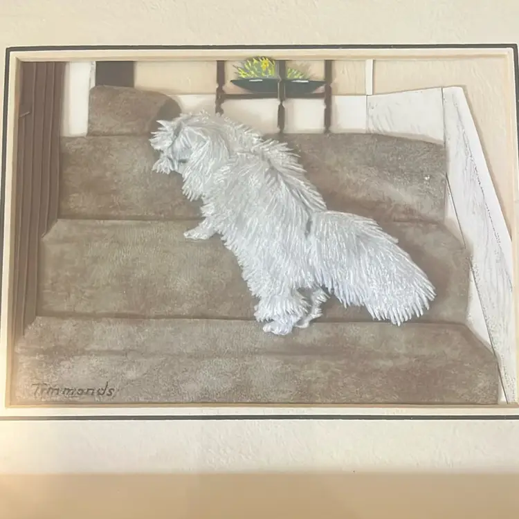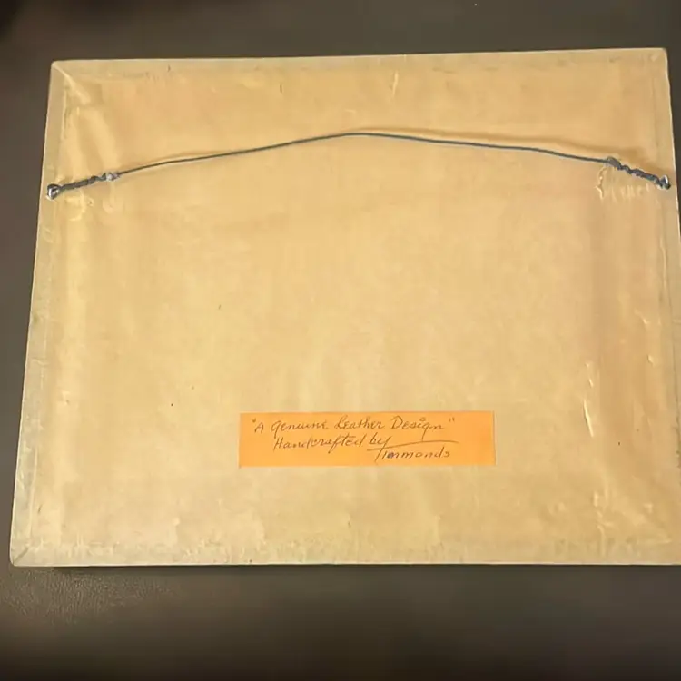 Leather art by Timmonds. Cat climbing up stairs. So Unique. 11 inches wide and 9!inches long.