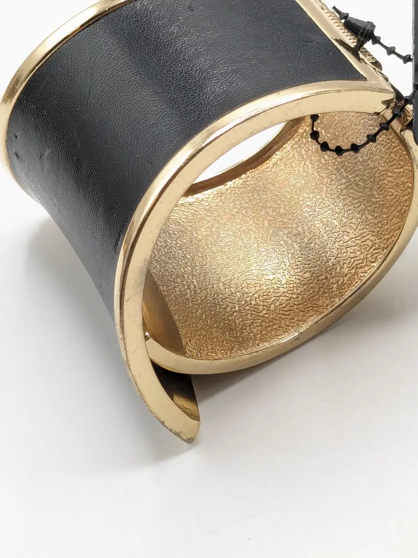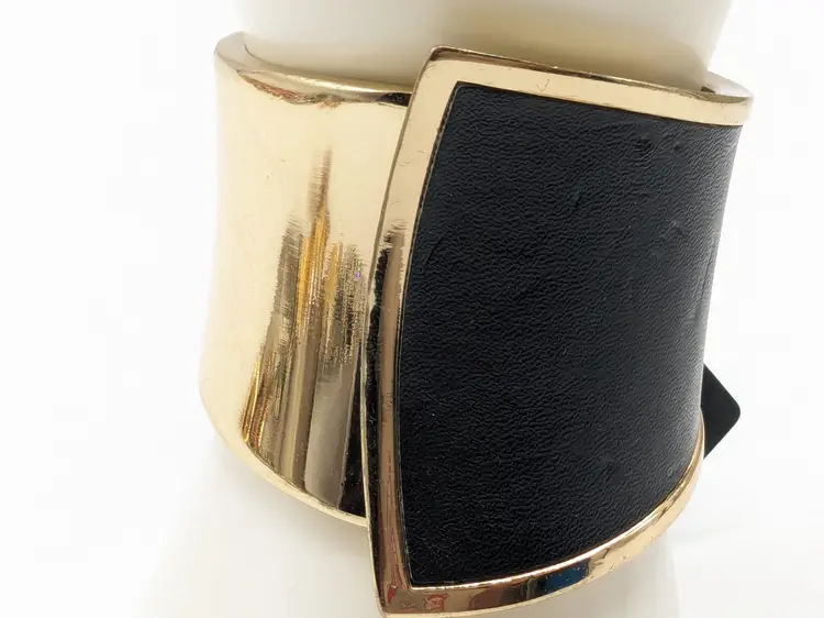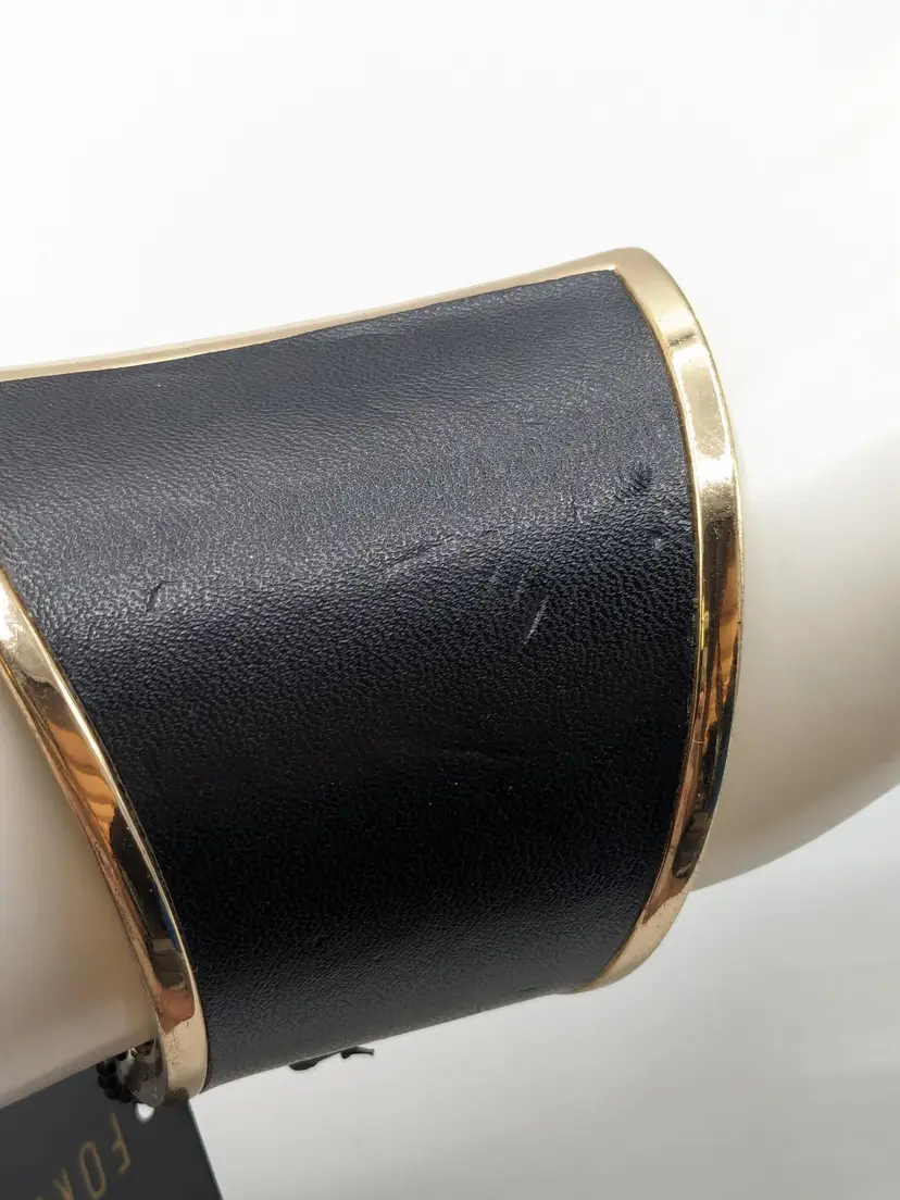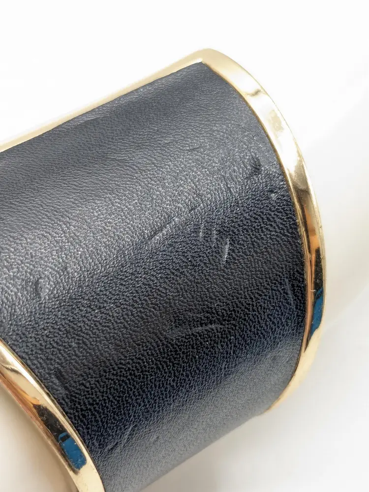 Good condition. READ: Faux leather has some scuffs and indents in material. Also, gold colour shows some scratches. NOS from Forever 21 with defects that are depicted in the last two photos. Measures 7" and 2 1/2" at its widest point.