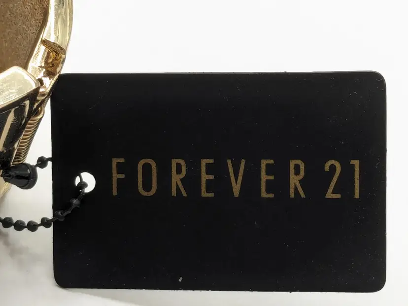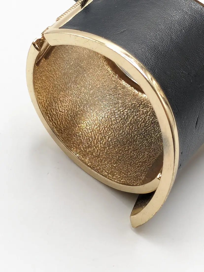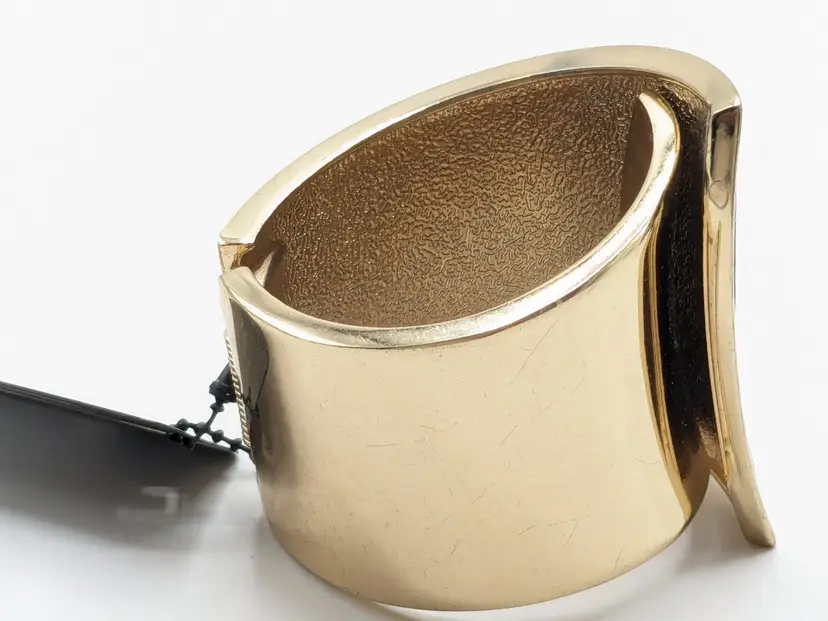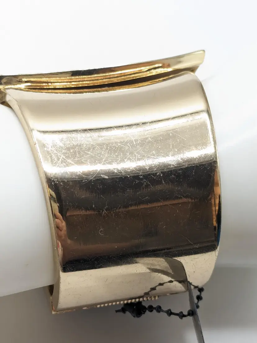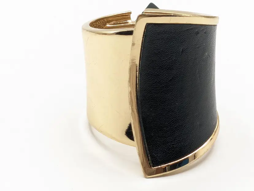 Good condition. READ: Faux leather has some scuffs and indents in material. Also, gold colour shows some scratches. NOS from Forever 21 with defects that are depicted in the last two photos. Measures 7" and 2 1/2" at its widest point.