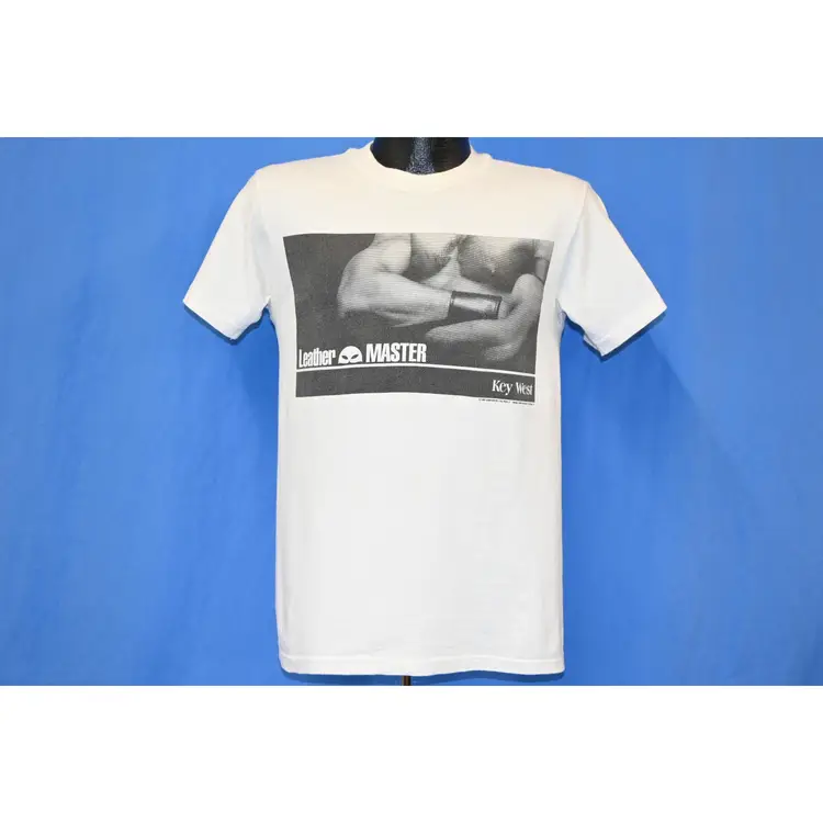 17.5x25, this vintage shirt promotes an adult novelty store called Leather Master in Key West, Florida