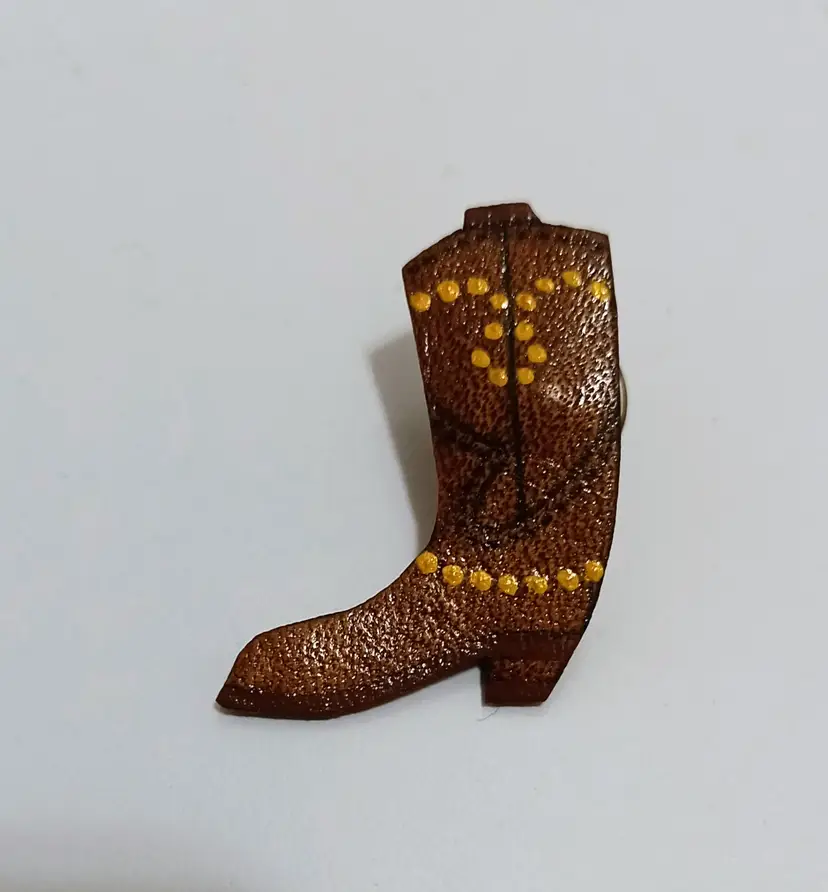Leather Western Style Boot Lapel Pin; 1" L x 1.75" W; Very Nice Condition!