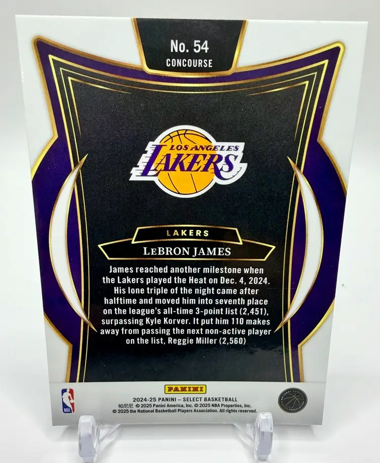 2024-25 Panini Select Blue Prizm #54 trading card featuring LeBron James from the Los Angeles Lakers. This sports trading card is an original licensed reprint in English, with a parallel variety specific to the Blue Prizm insert set