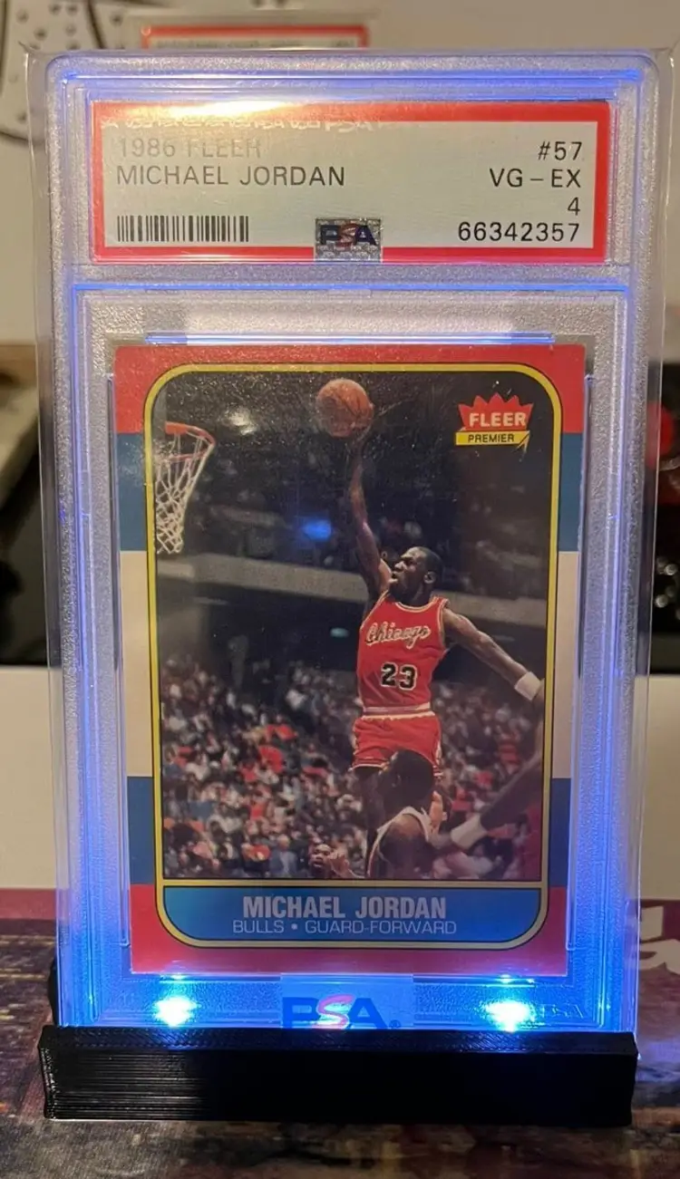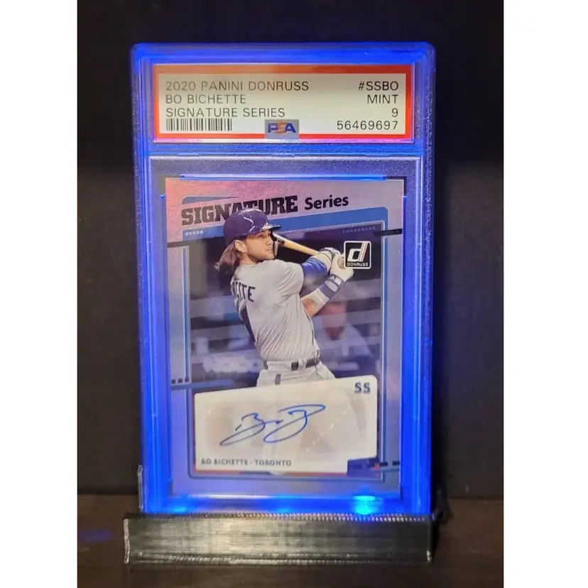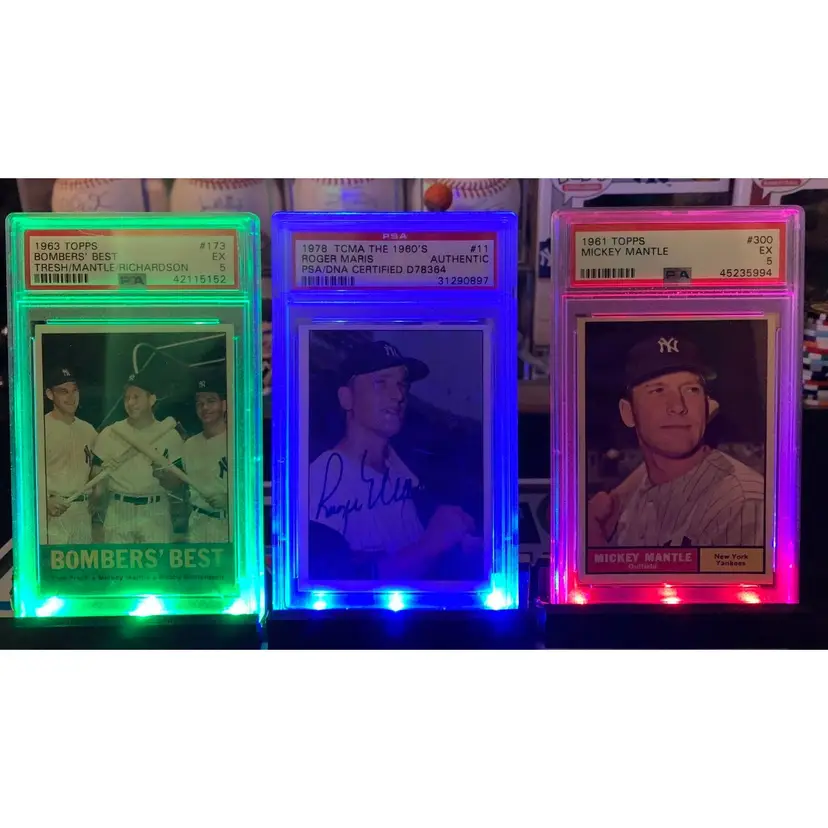 LED Card Stand for Graded Cards (choice of LED Color), and a battery. The perfect gift for the collector in your life!