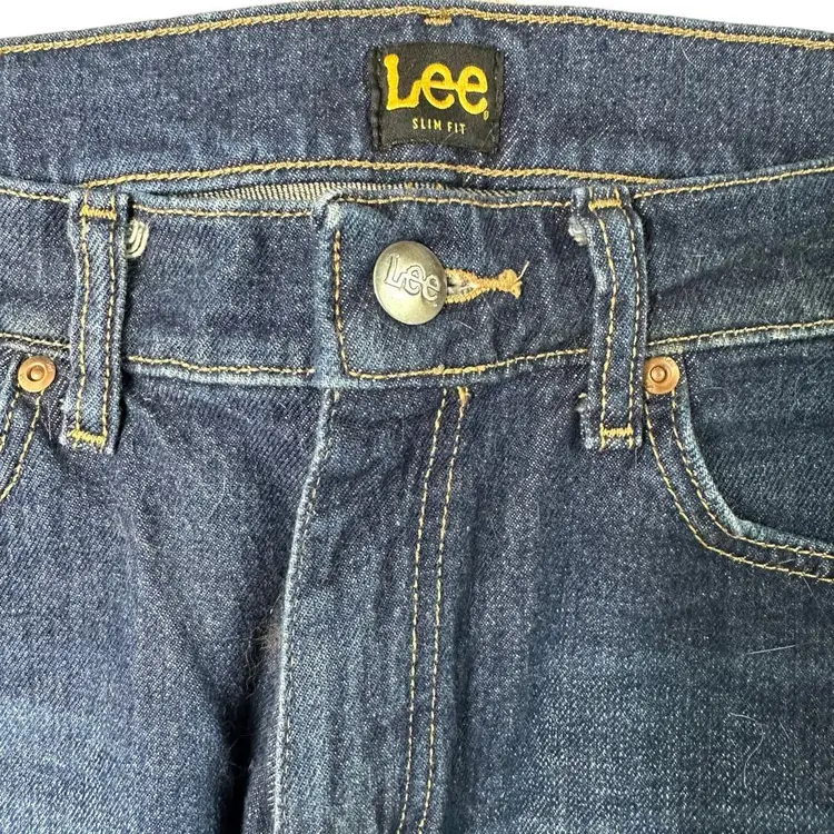 Lee Denim Jeans Dark Wash Slim Straight Leg Men's size 31x32 Excellent condition, dark blue Waist: 16 inches flat across Rise: 10 inches Inseam: 31 inches