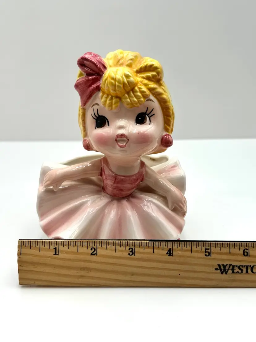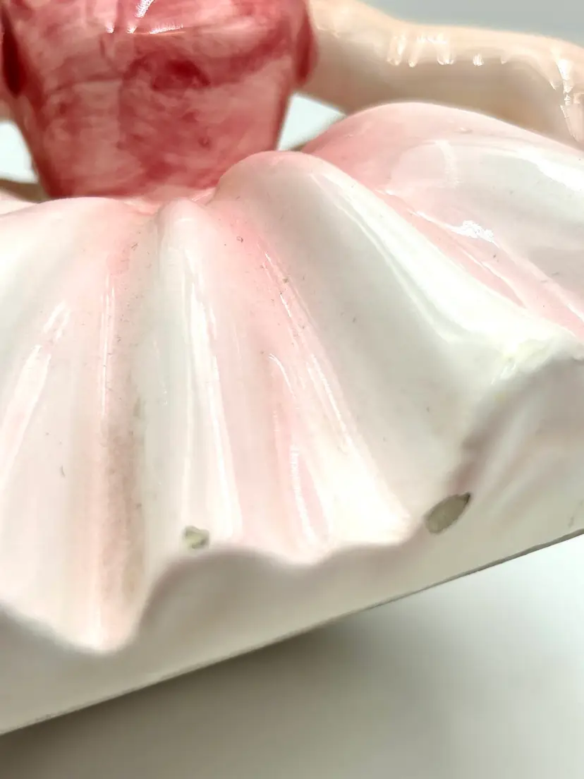 As shown 6 inches tall by 4.25 inches wide Two small chips on her tutu no other cracks