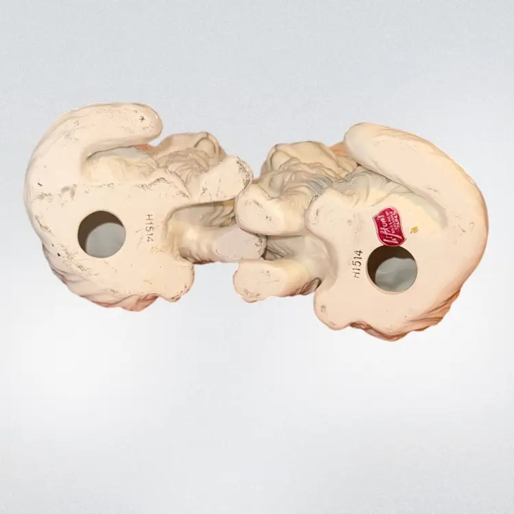 Vintage Japan Lefton Ceramic. Marked H1514. One with Red foil sticker intact. Beautiful mirrored figurines. Excellent condition. 5.5” tall.