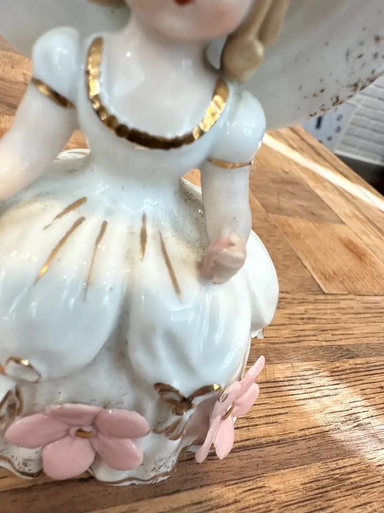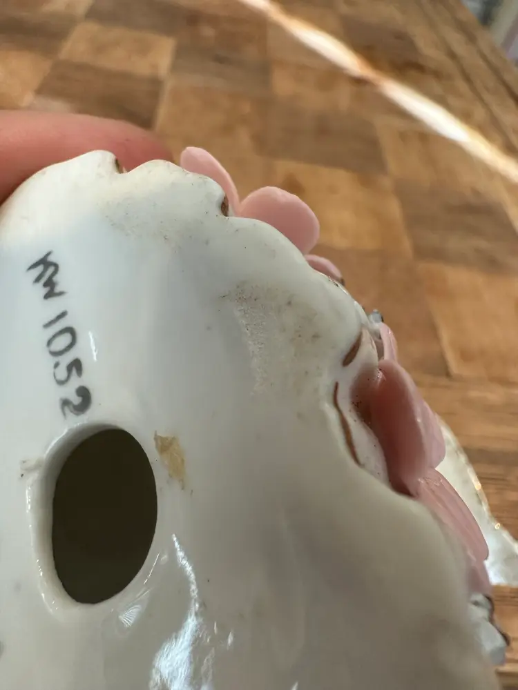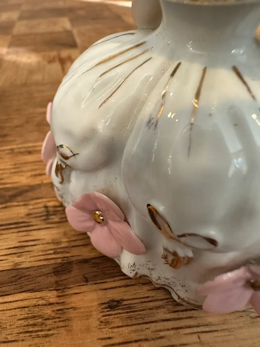 She is in very good condition with the only damage being on two of the back flower petals. The rear center flower & the rear flower on the left each have one petal that has a chip. These chips are shown in the photos.