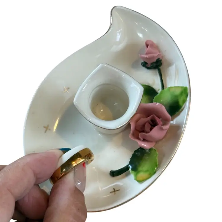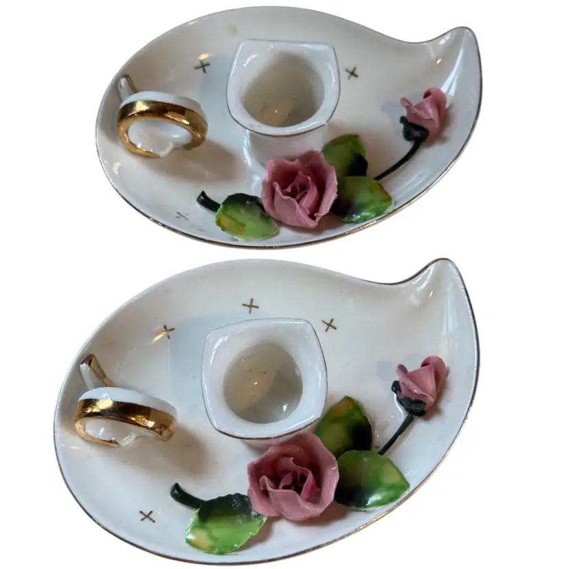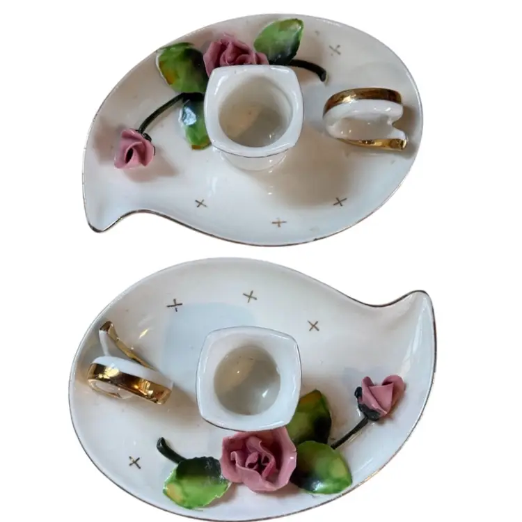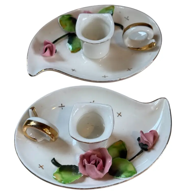 Lefton Mid Century Rose Candle Holders Pair