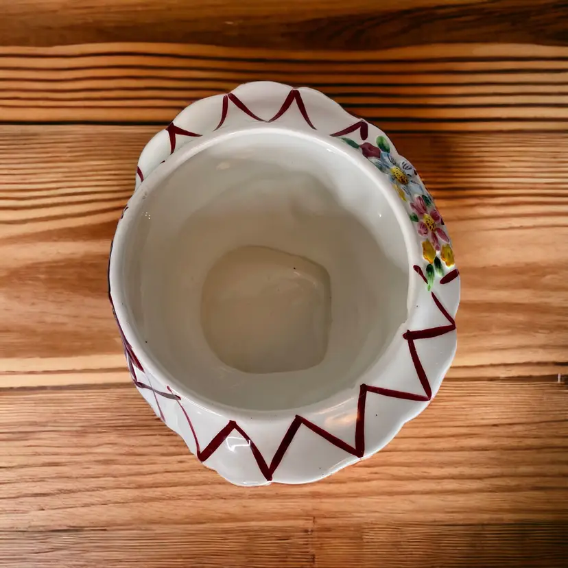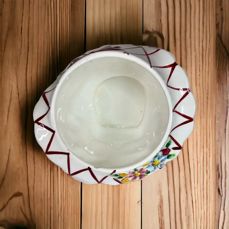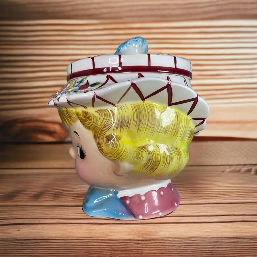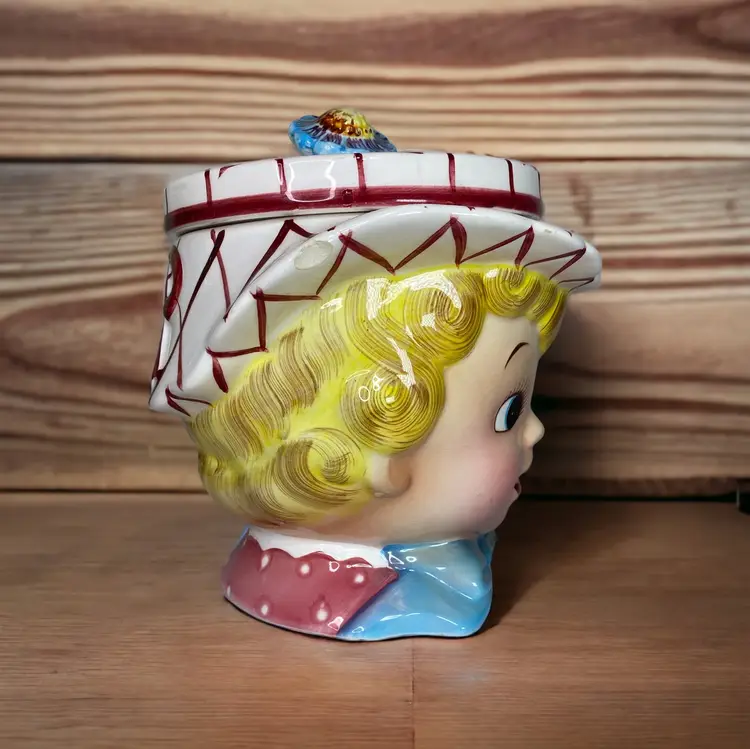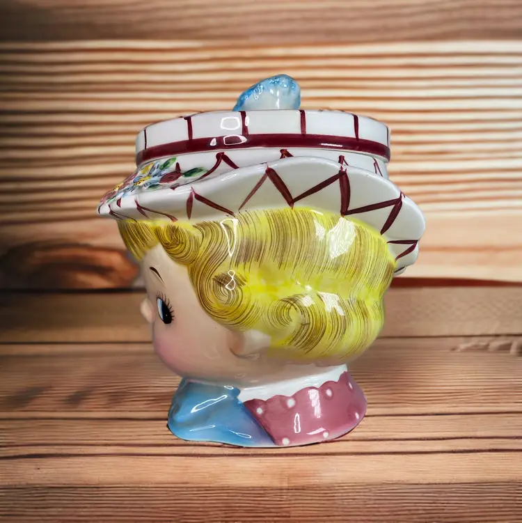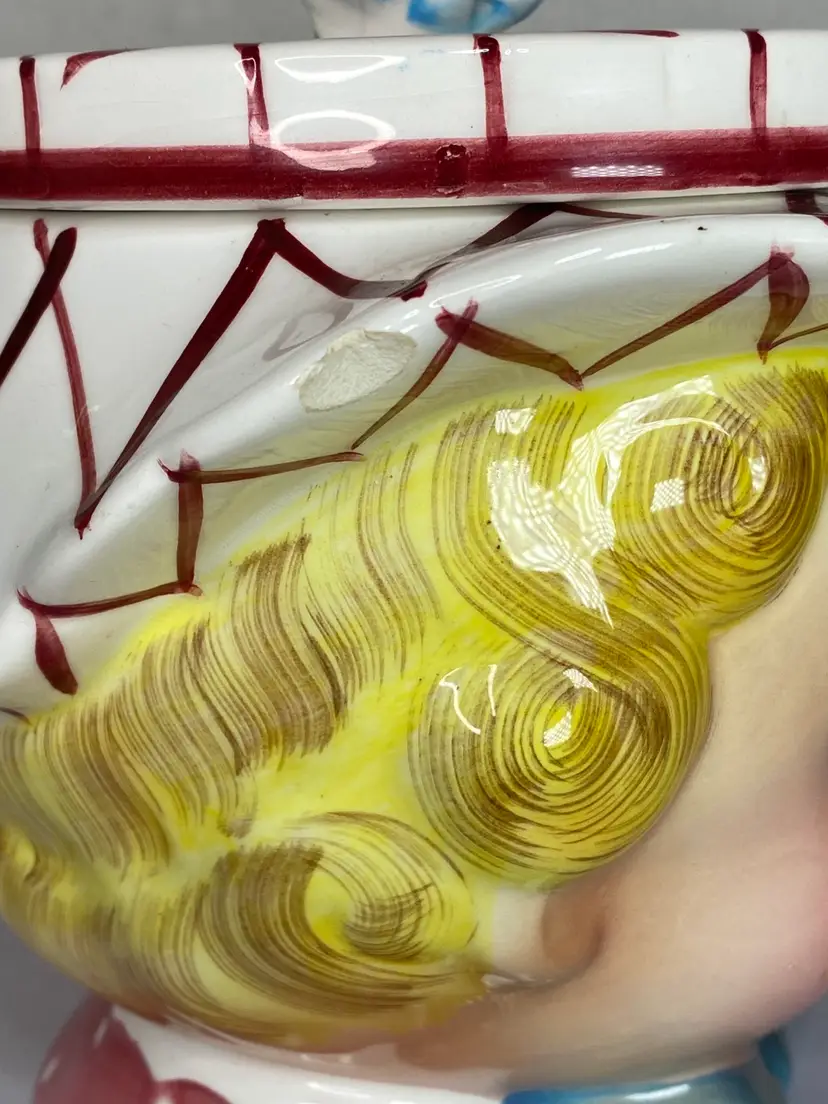 Good vintage condition with a larger chip on the underside of the rim of the hat and some small ones on the underside of the inside rim. Almost no crazing. Her colors are nice and bright. Please see all pictures and ask any and all questions before purchase! If you are unsure about anything, please ask QUESTIONS. Thank you for looking and happy shopping!
