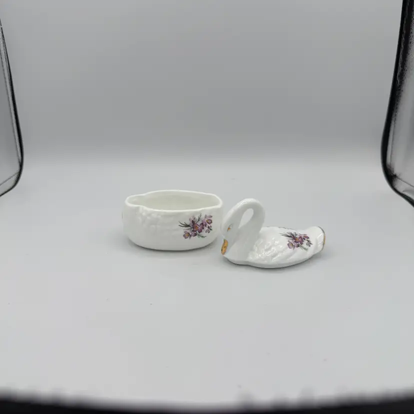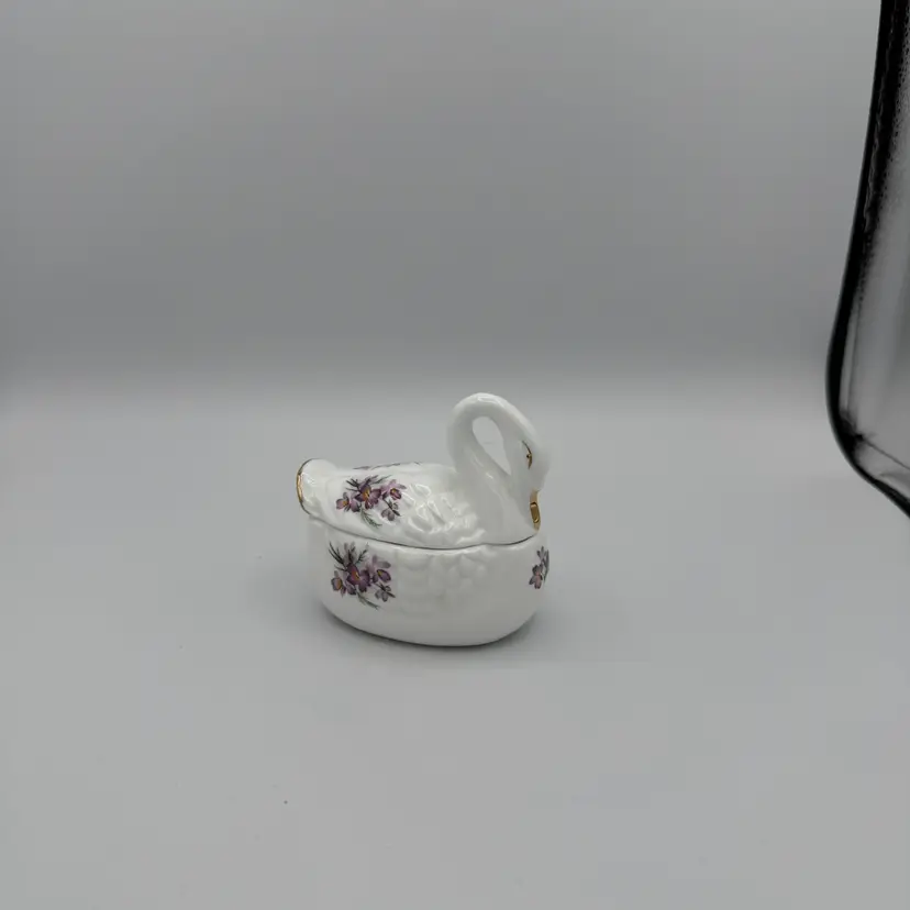 Vintage Lefton Swan Trinket Box. Hand Painted Porcelain/Bone China Swan Shaped Adorned With Floral Design and Gold Accents. No Chips/Cracks. 3 1/2" Tall X 4" Long.